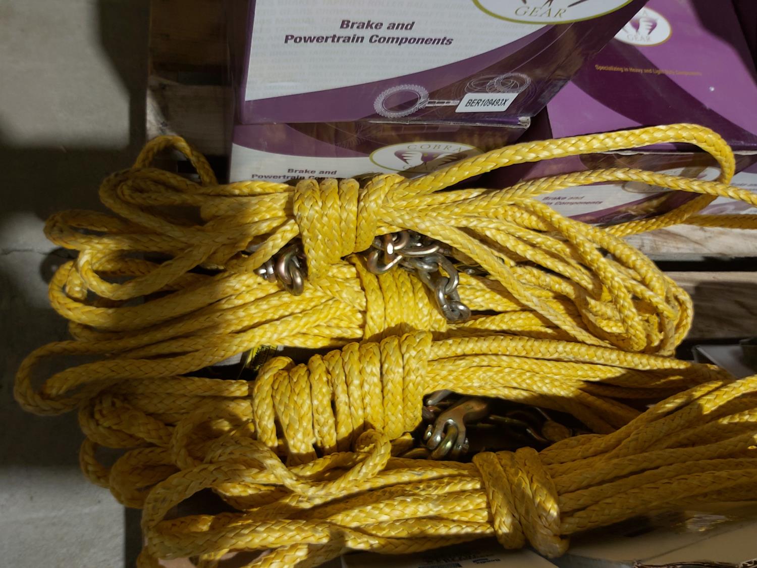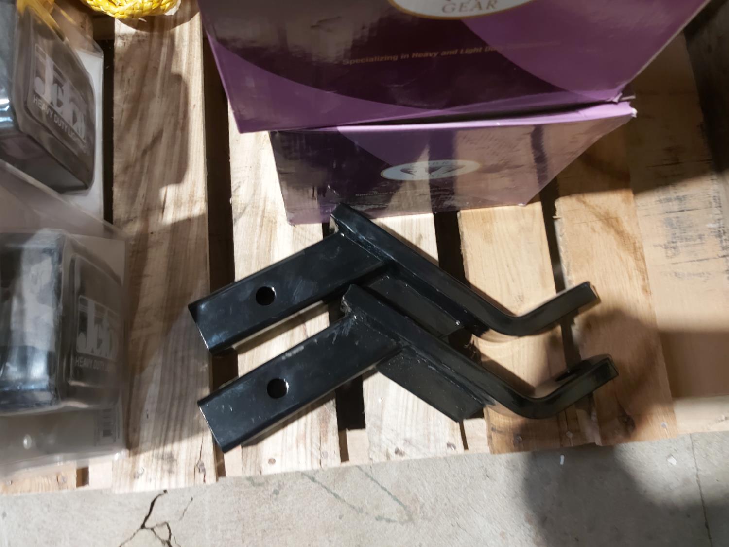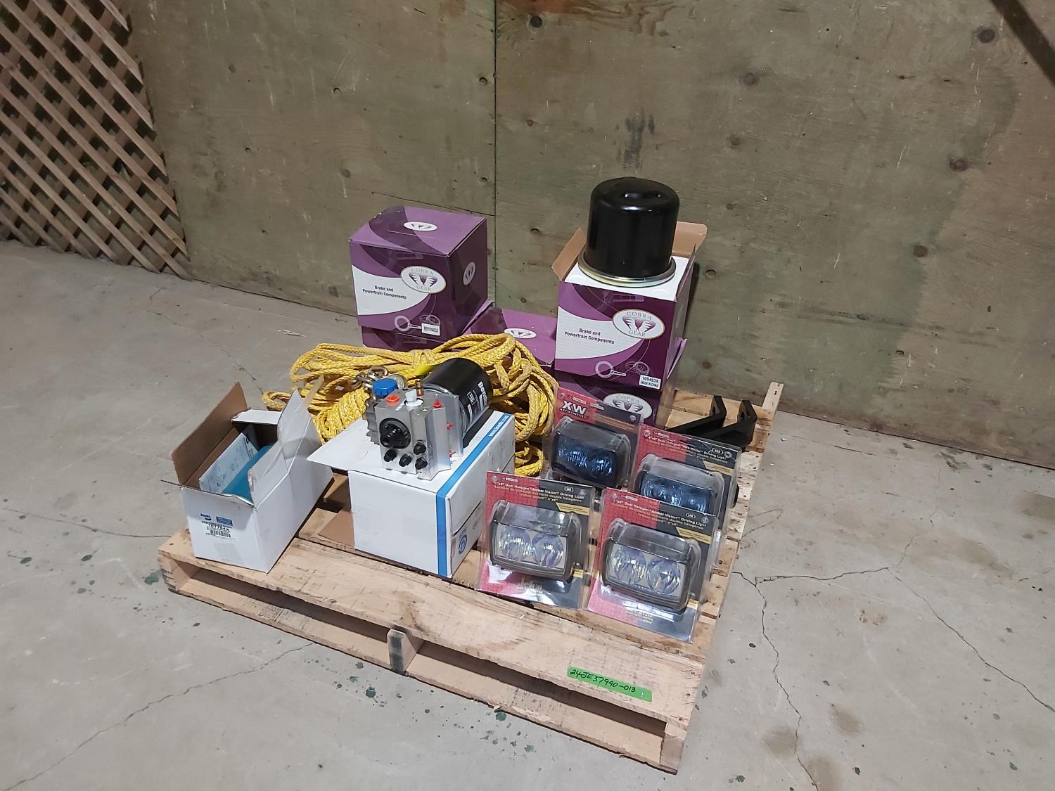 1282 (4) Dual Halogen Lights, (5) Cobra Gear Brake Air Dryer Cartridges, (2) Receiver Drop Hitches (Unused)