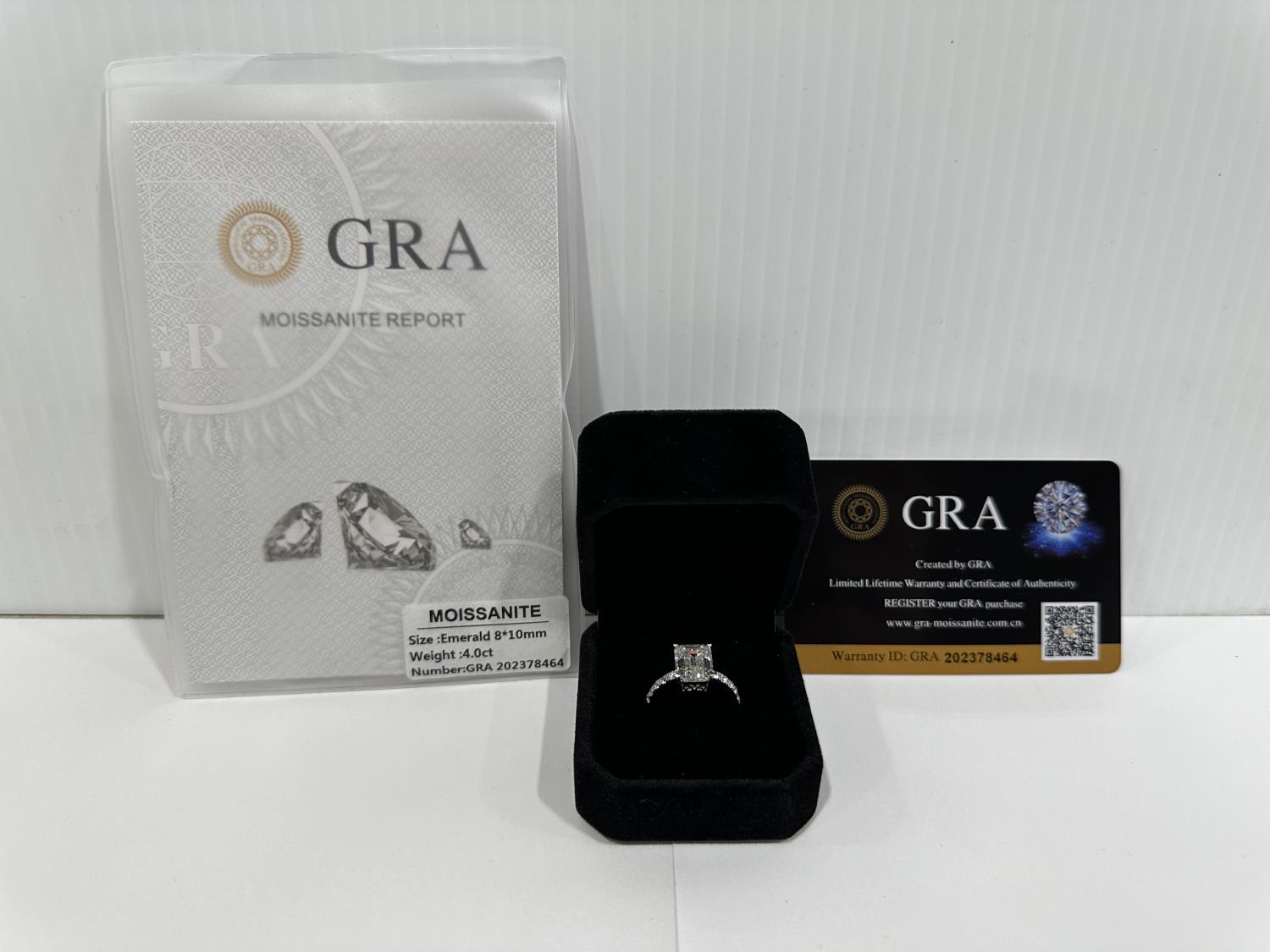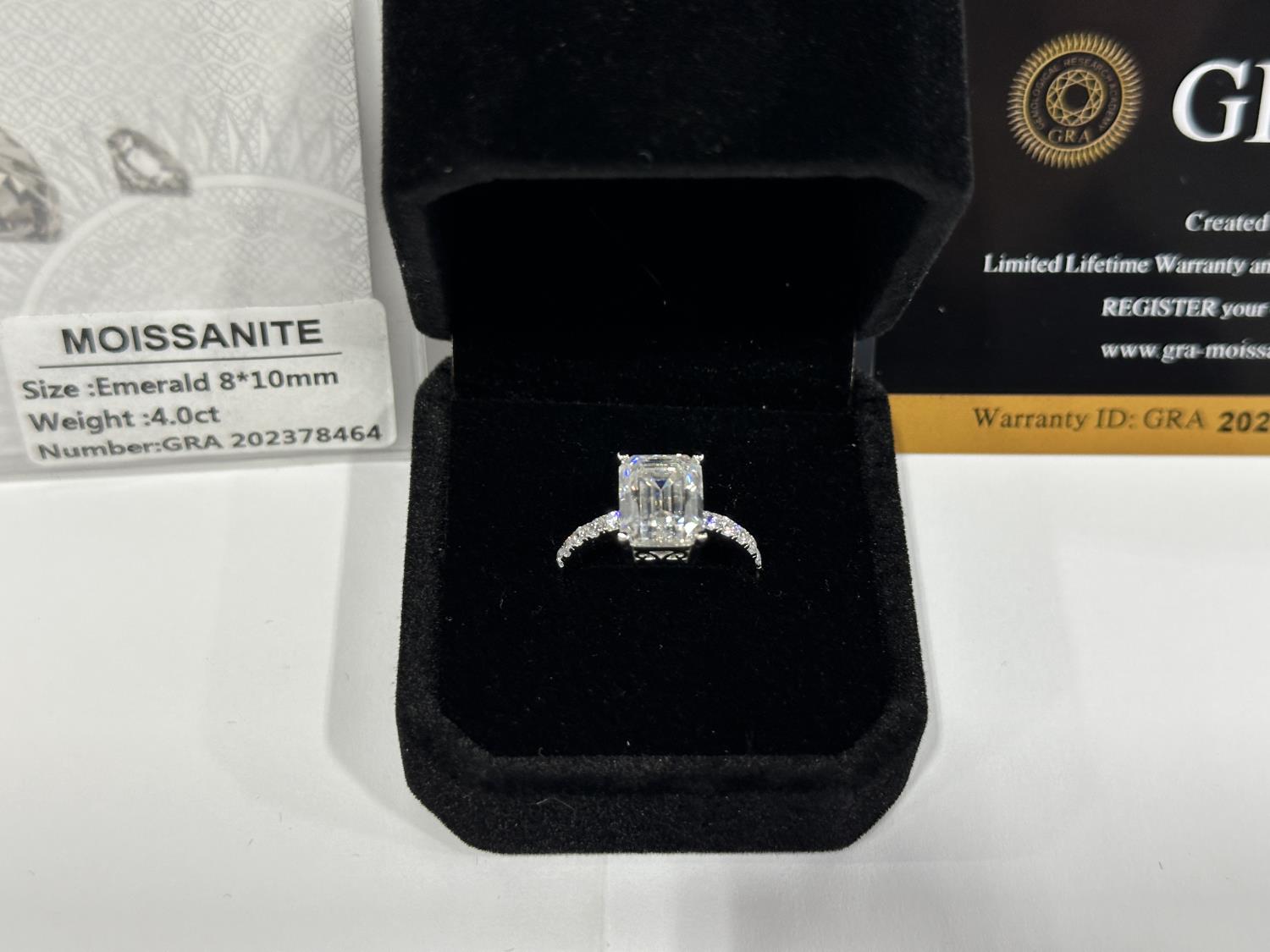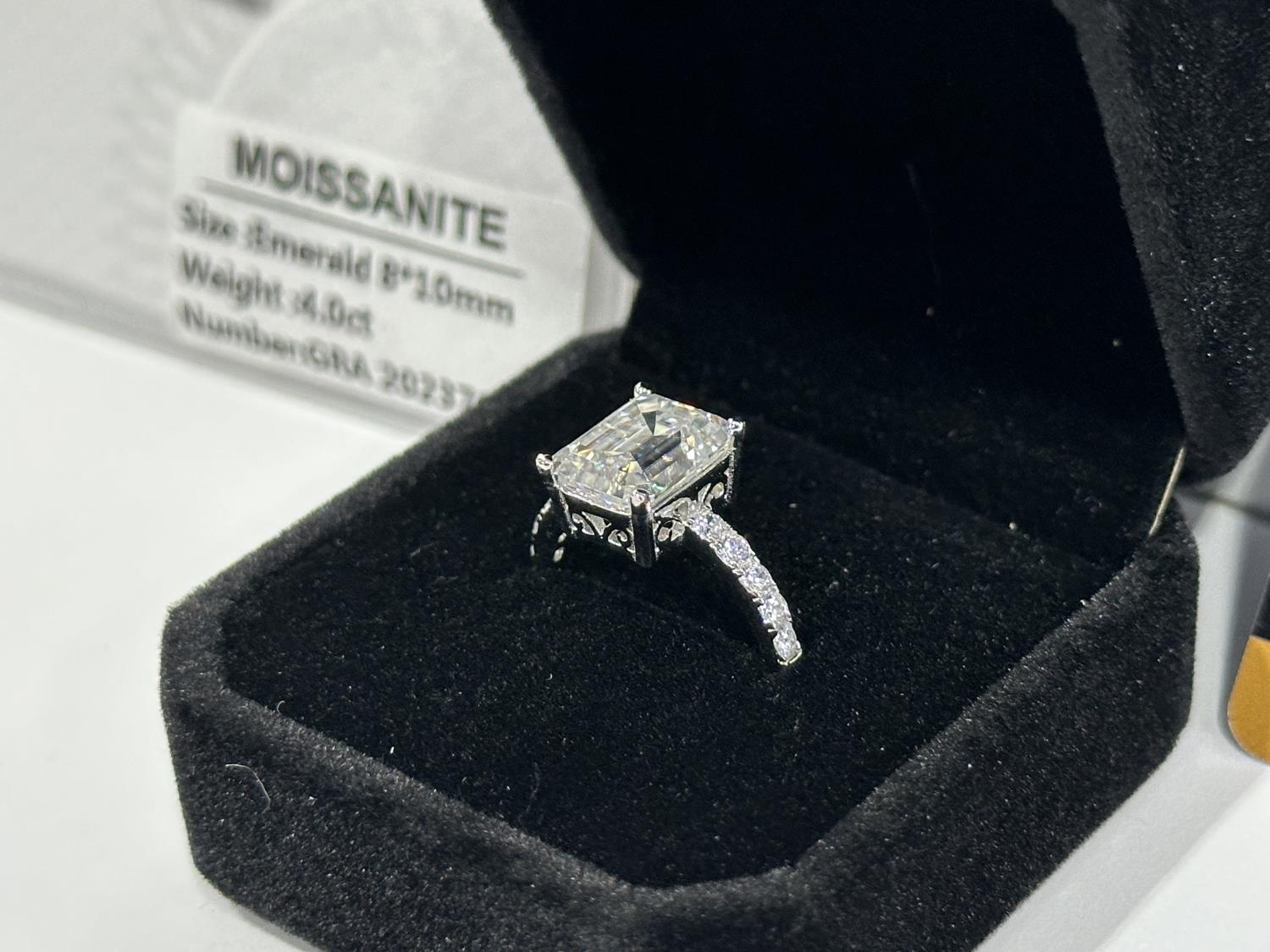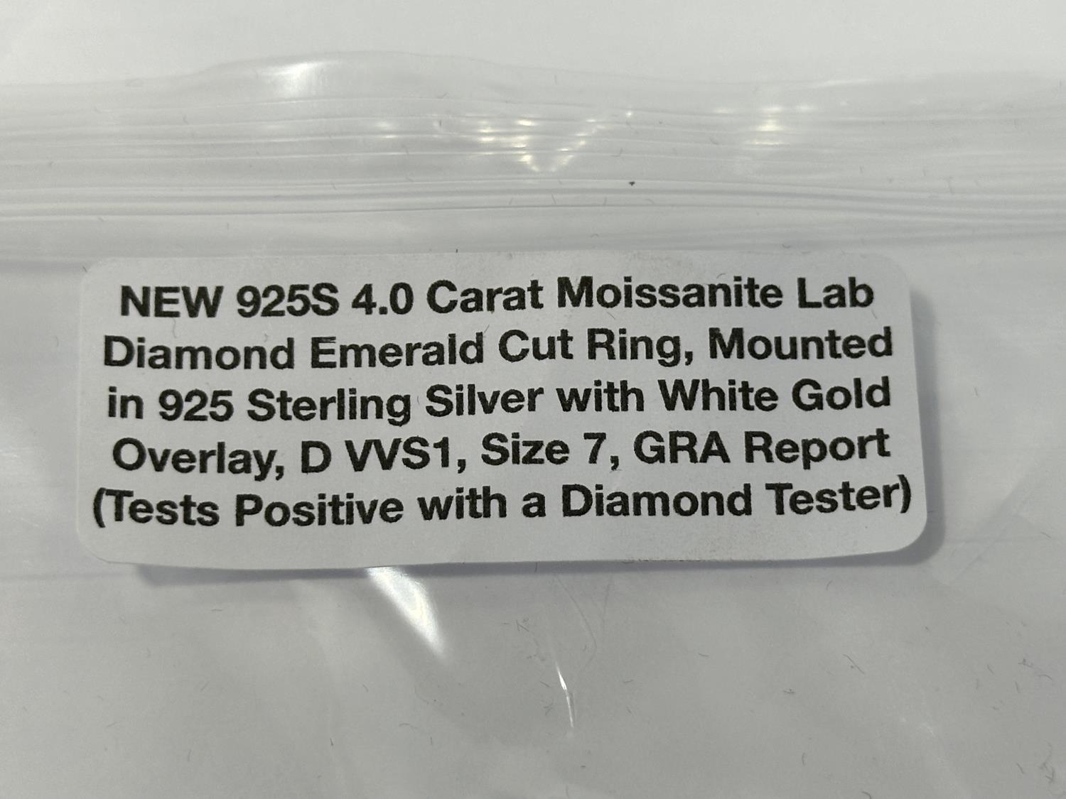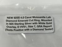 1985 Smartlife 925S 4.0 Carat Moissanite Lab Diamond Emerald Cut Ring - Size 7 (Unused)