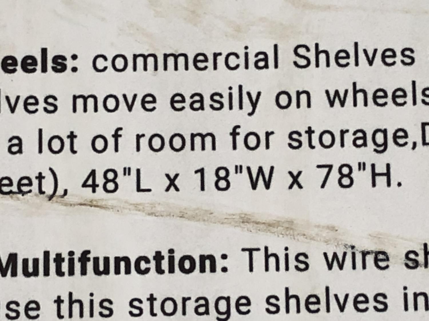 48 inch w x 18 inch d x 78 inch h