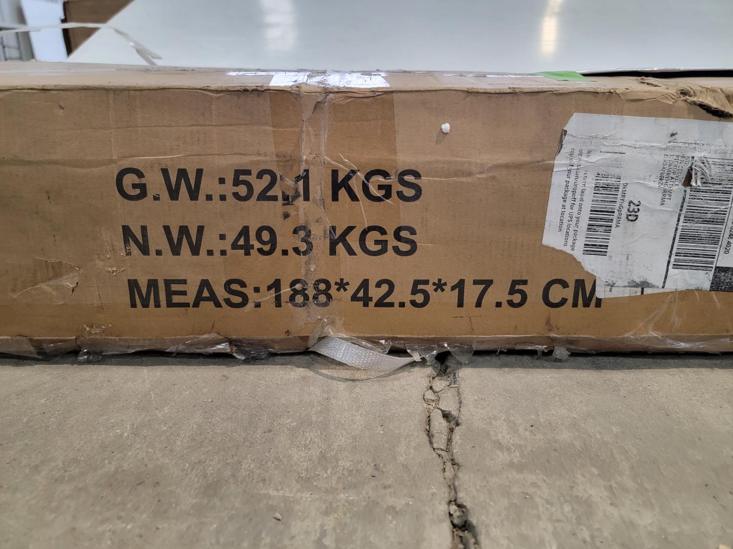 188 cm x 42.5 cm x 17.5 cm