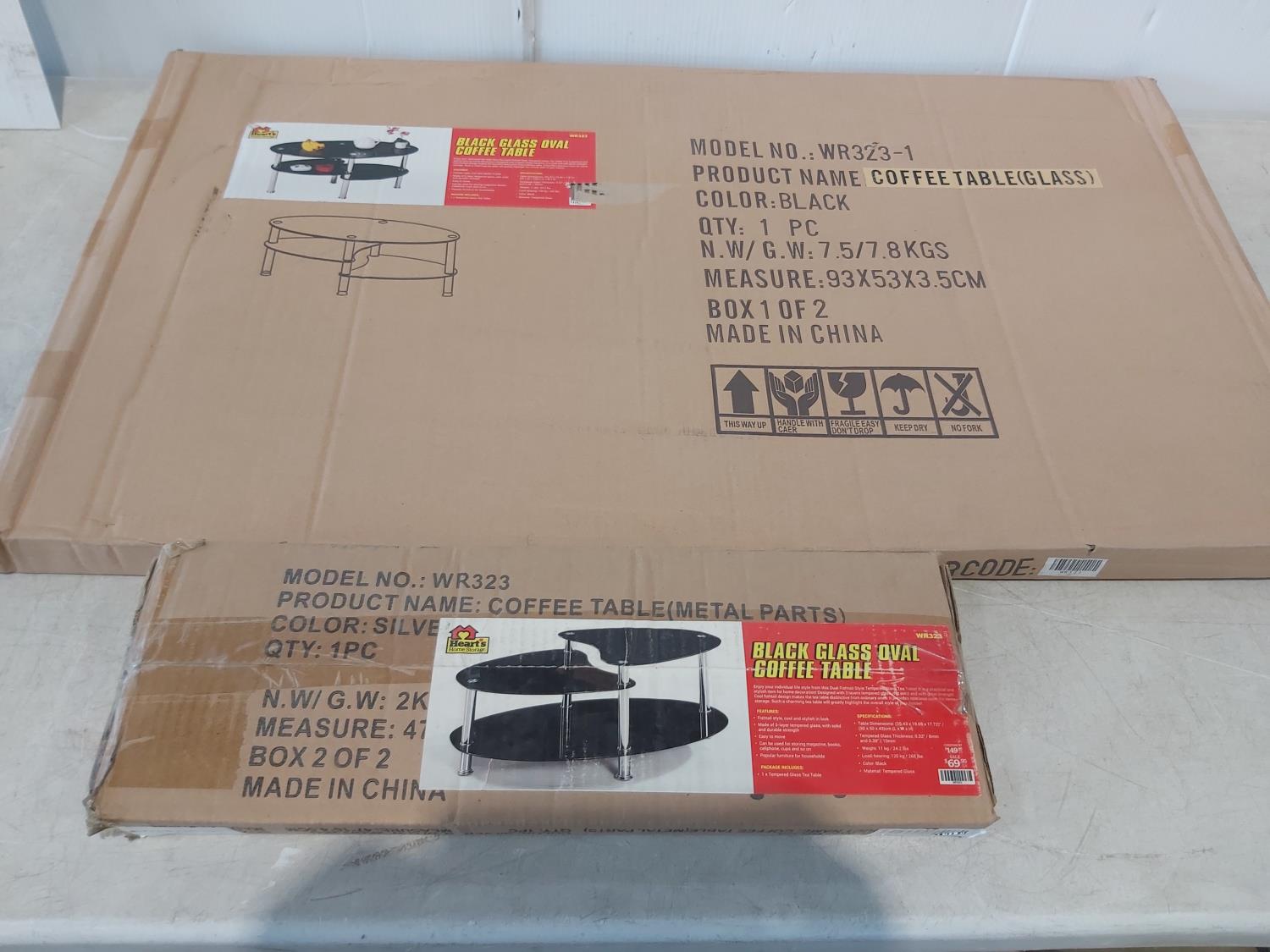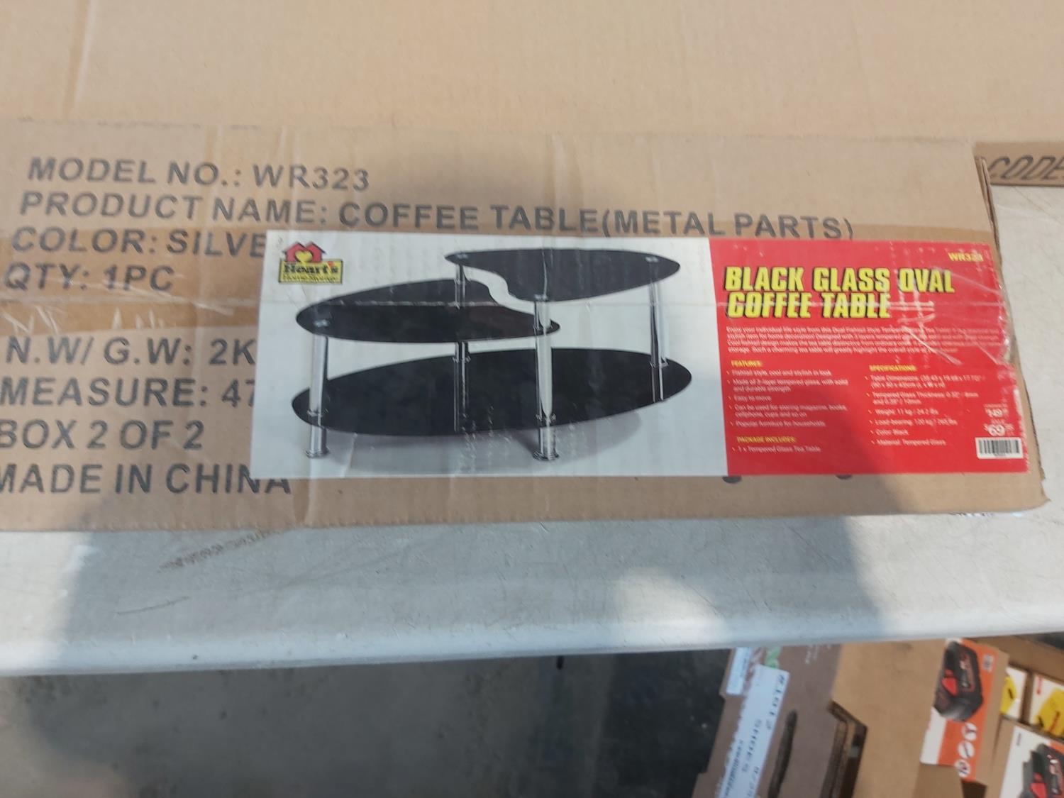 1364 Black Glass Oval Coffee Table (Unused)