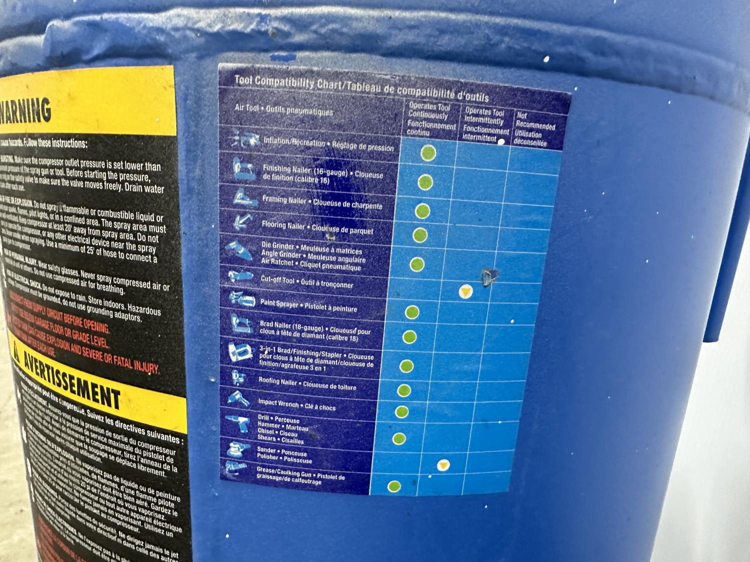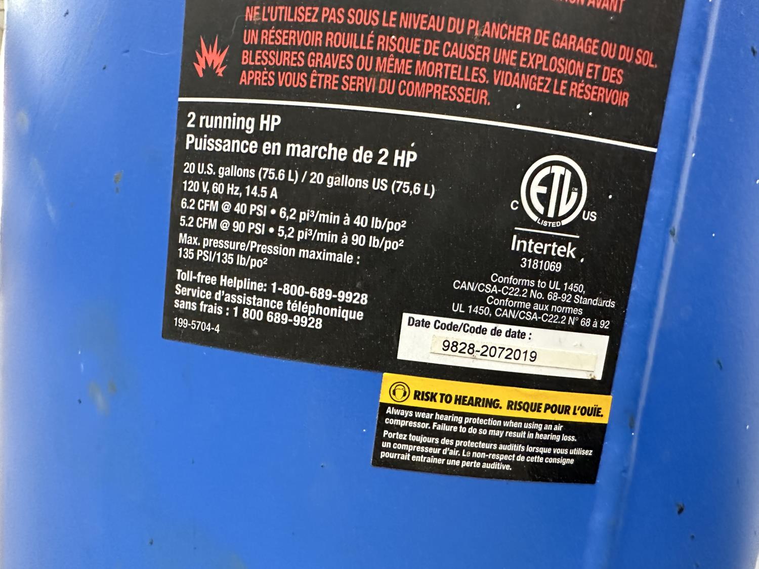 120 V, 135 max PSI, 2 HP