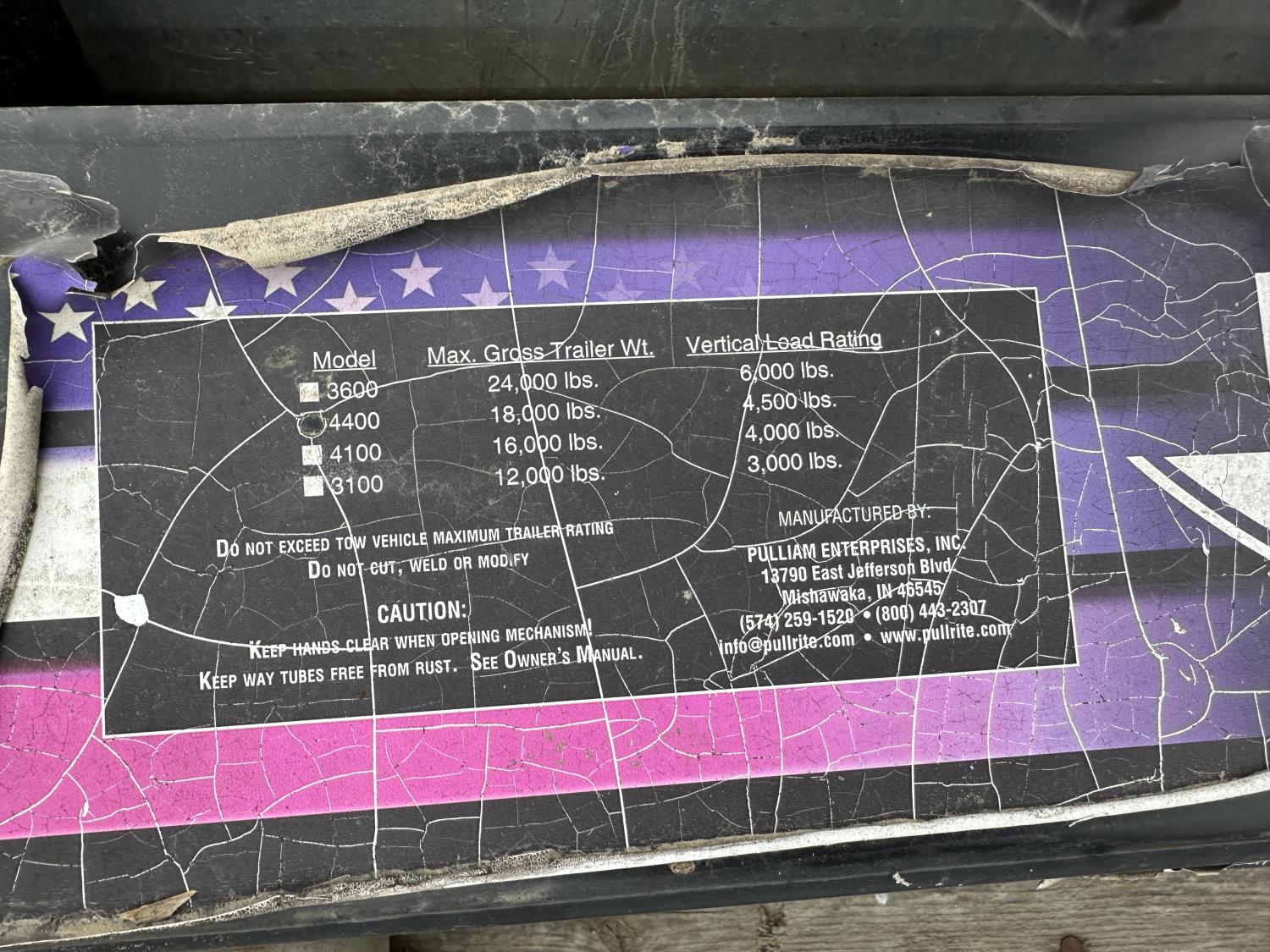 2087 Pull Rite Super Glide 4400 5TH Wheel Hitch