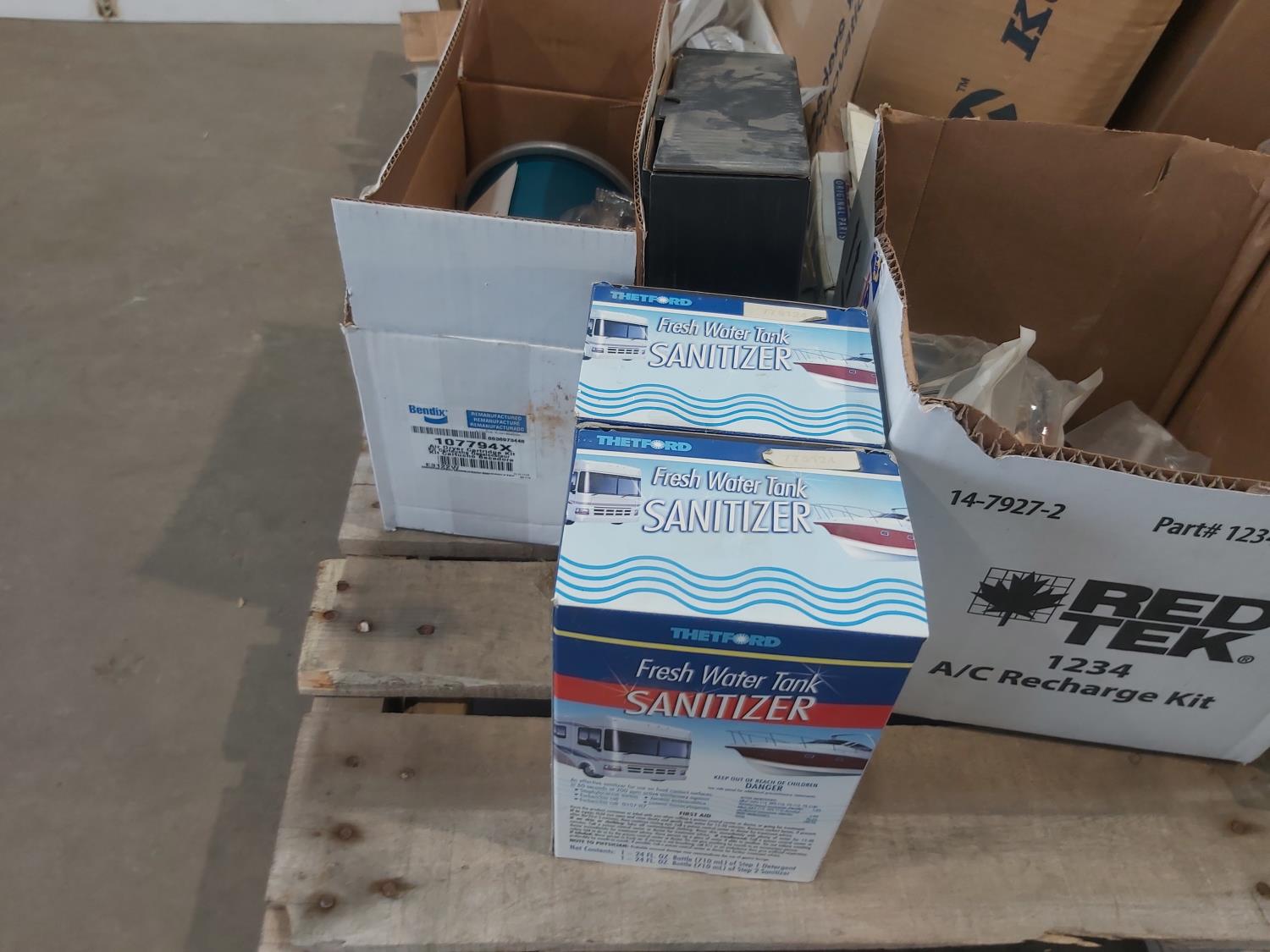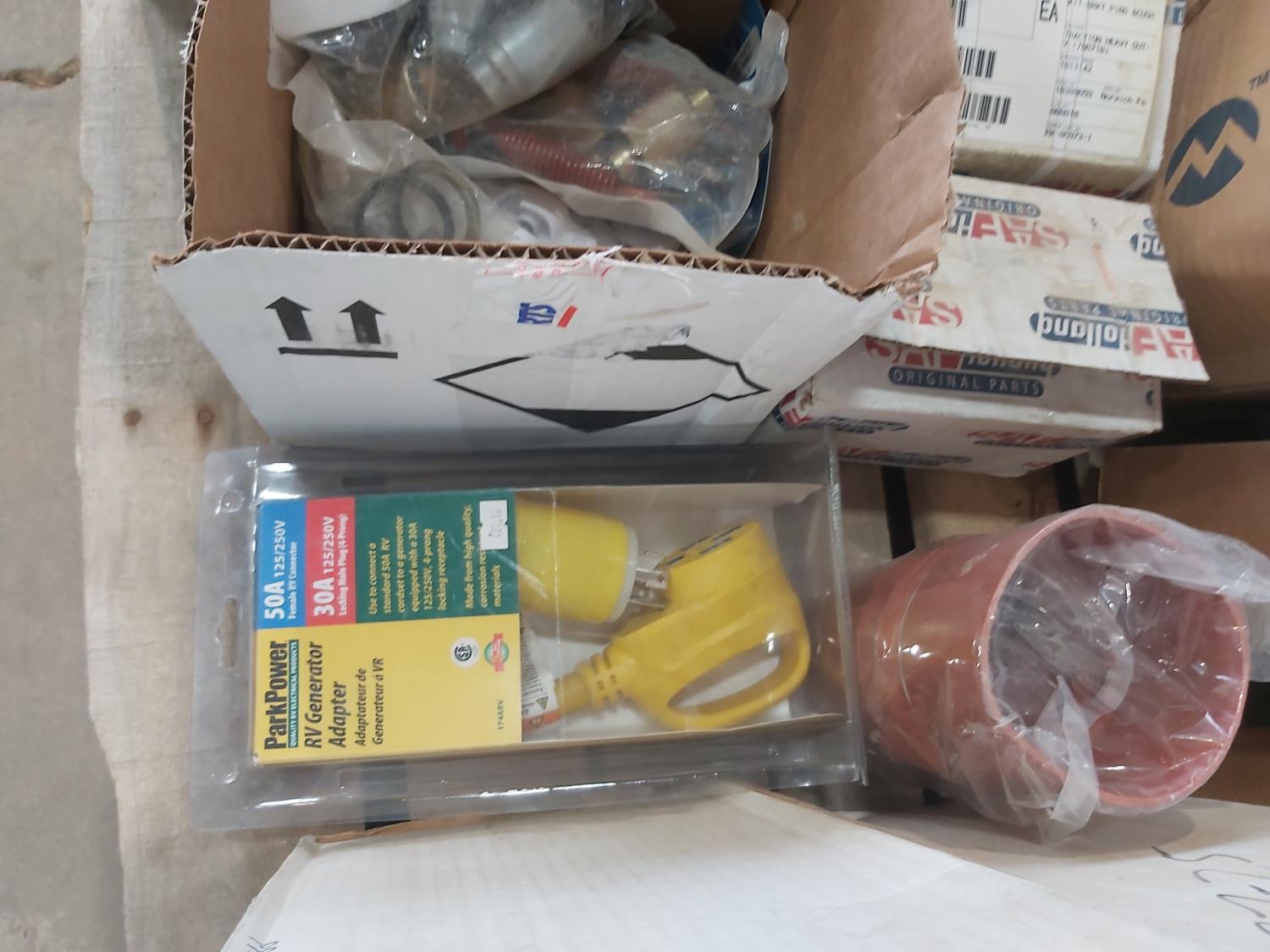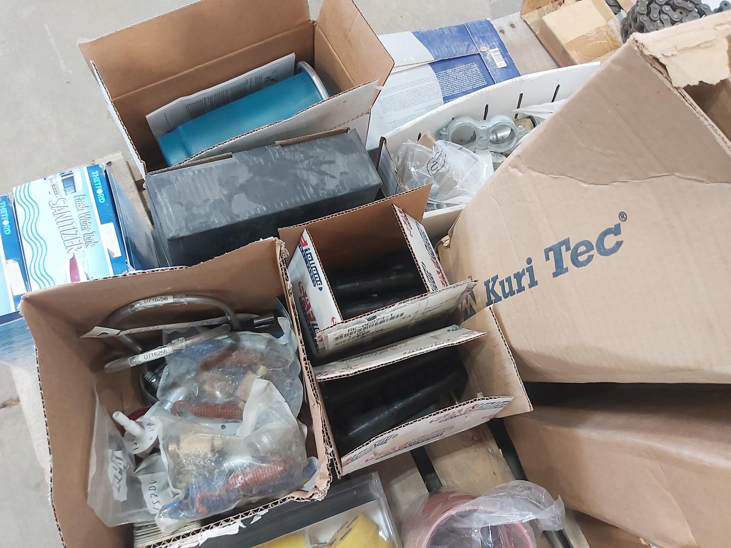 (2) pair towing mirrors, various size roller chains, RV generator adaptor, (2) fresh water tank sanitizer, Bendix air dryer, 5/8 inch ID to 78 inch OD food grade tubing, miscellaneous hardware