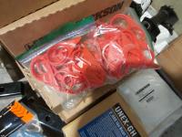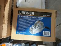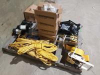 (2) 4 inch 5400 lb ratchet straps, (4) nylon tow ropes w/chains, (8) Hendrickson trailer pivot bolts and nuts, (3) Hendrickson trailer shoes mount bolt replacement kits, 2000 lb boat trailer winch, (3) slider strap winches, trailer brake reinforcement kit, (2) bushing tube spacers, 16 ft ratchet strap
