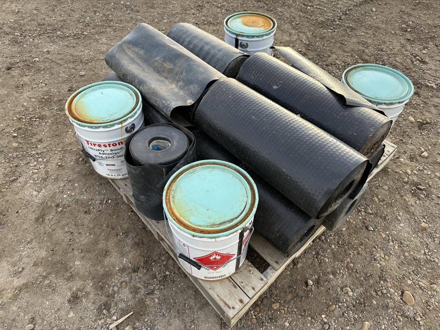2126 Qty of Roofing Paper and 5 Gallon Pails of Firestone Bonding Adhesive