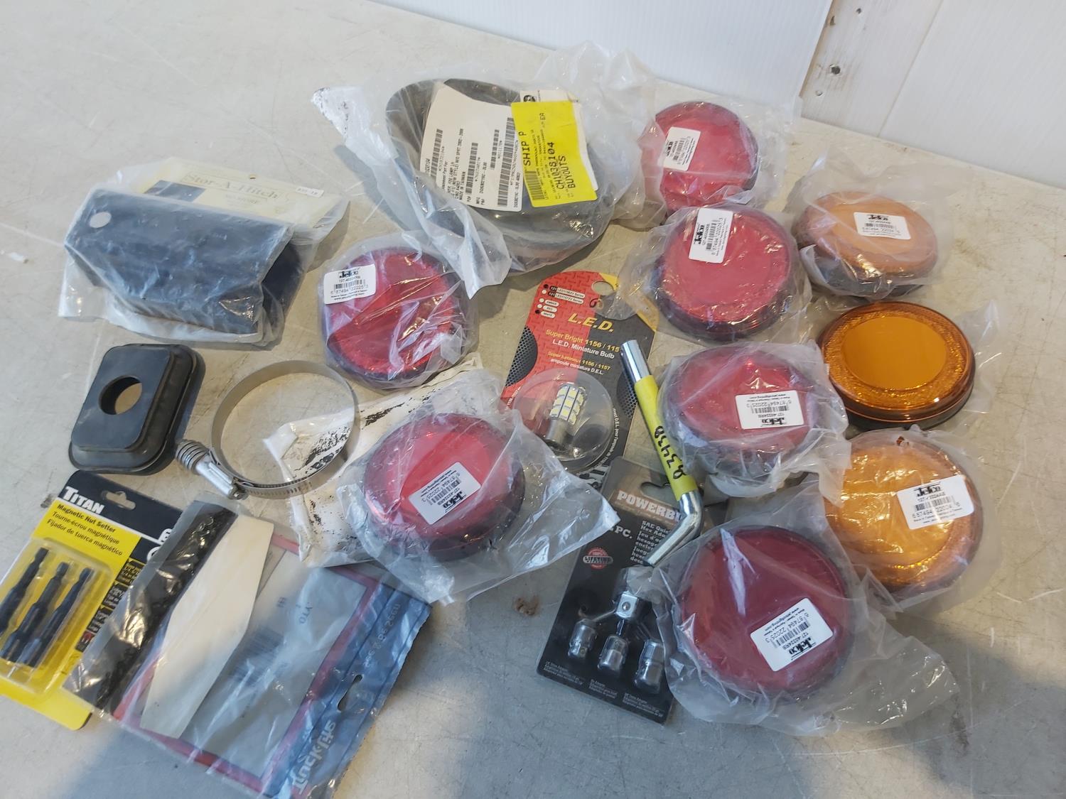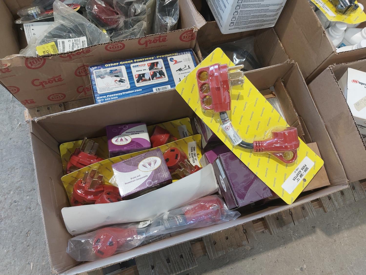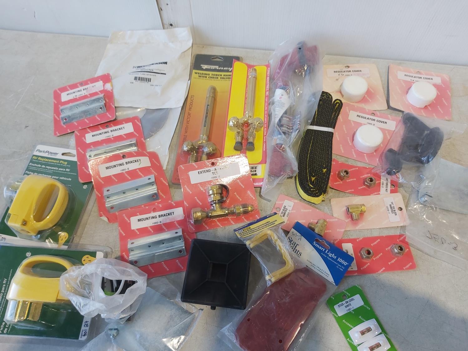 Park power adapters, RV replacement plugs, (2) welding torch handles, drive belts, lights/lens covers, fastway foot jack, shur-set breakaway system, replacement filters, air fresheners