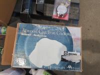 (2) axle stands, RV grill rack for BBQ, (2) 6000 lb tow hitch, Atwood cast iron cookware, portable campfire, Shurflo fresh water pump, trailer lock