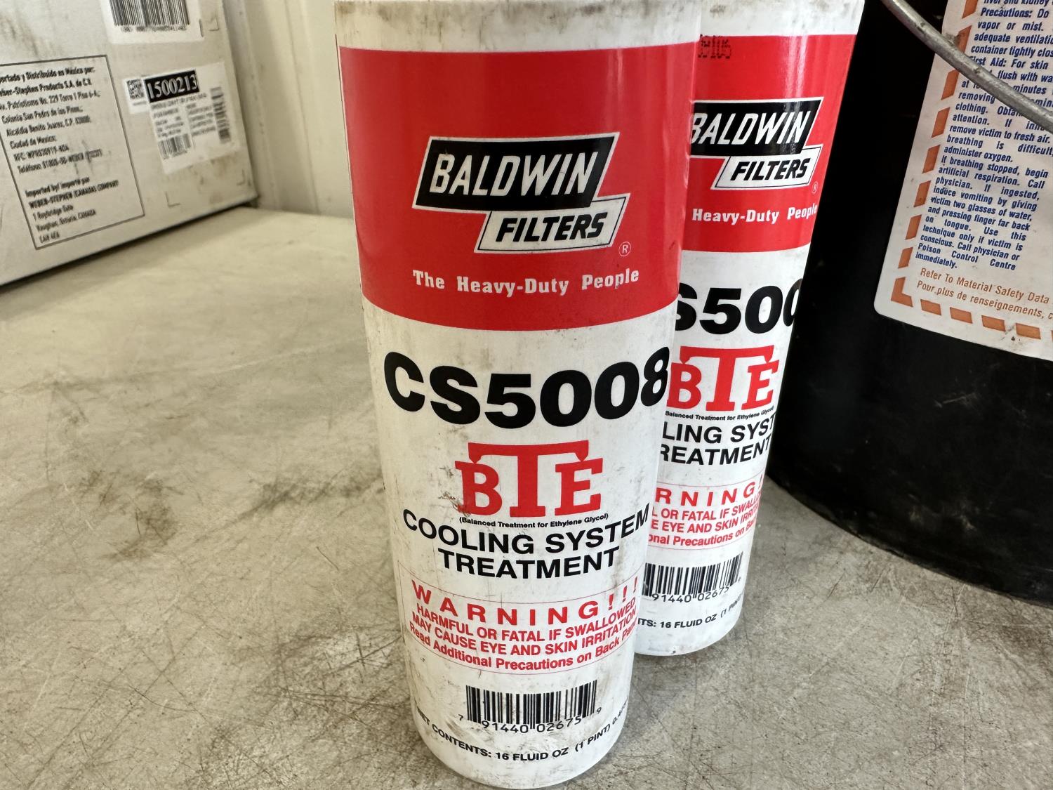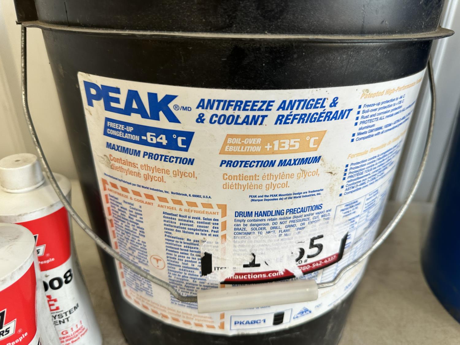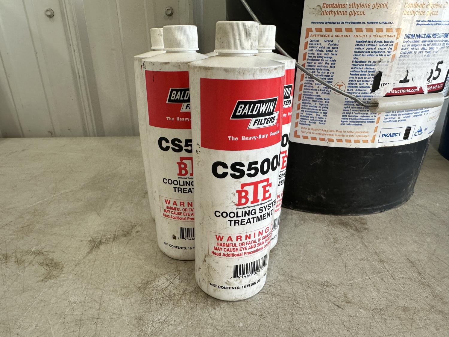5gal± Chevron oil for natural gas engine, 5gal± Peak antifreeze antigel and coolant, (5) bottles of Baldwin CS5008 cooling system treatment