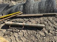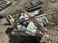 (2) tote bags, brooms, rock tamers, post pounder, pitch fork, shovel