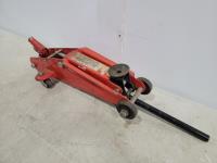 Floor jack, (2) valve covers for Chevrolet 283, wash wand, lights, 7-way trailer plugs, electrical cords, propane torch