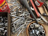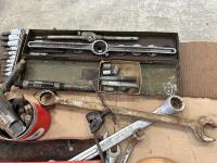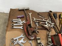 Sockets, wrenches, Ridgid pipe cutter, screwdrivers
