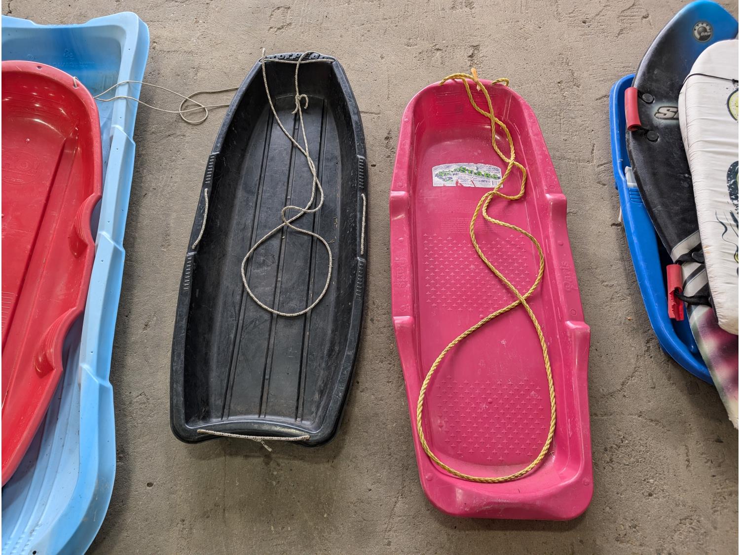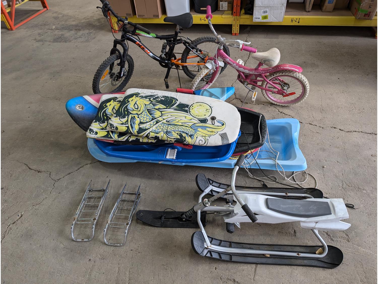 2024 Qty of Snow Sleds, (2) Rear Bike Racks and (2) Children's Bikes