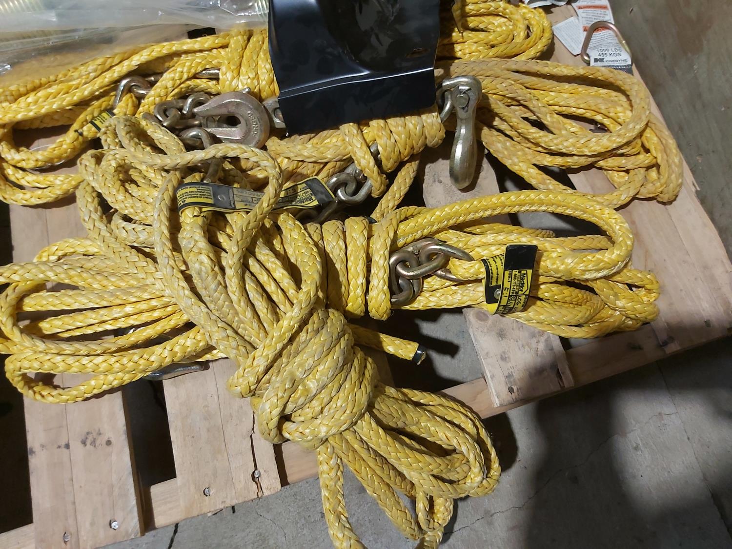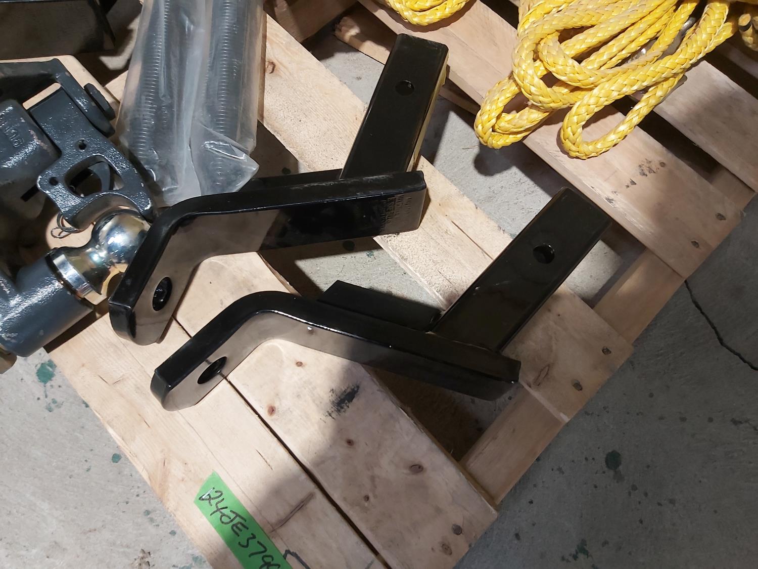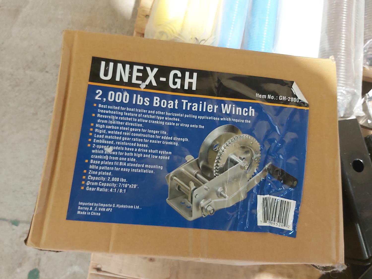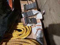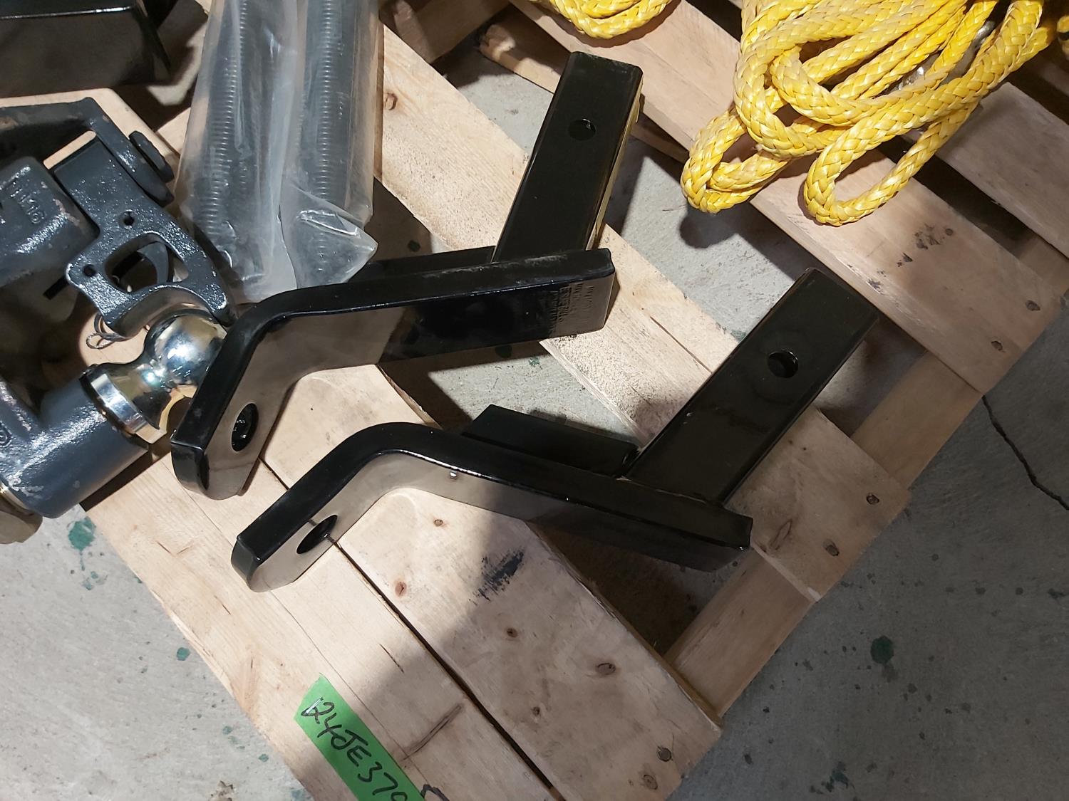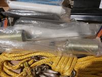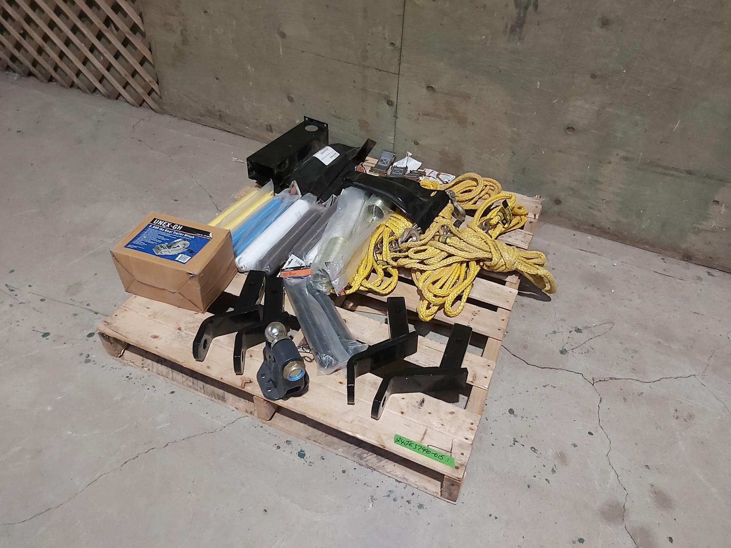 (4) tow ropes w/ chain, (4) receiver hitches, Bolt on pintle hitch, (12) various size hood springs, 2000 lb boat trailer winch, 14 inch metal consul, 09-14 F-150 right side cab corner, (4) 1000 lb tie down straps
