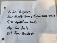 (2) 22 inch wipers, rear handle cover for 2008-2013 Yukon, 5.3L ignition coils, oil pan gasket