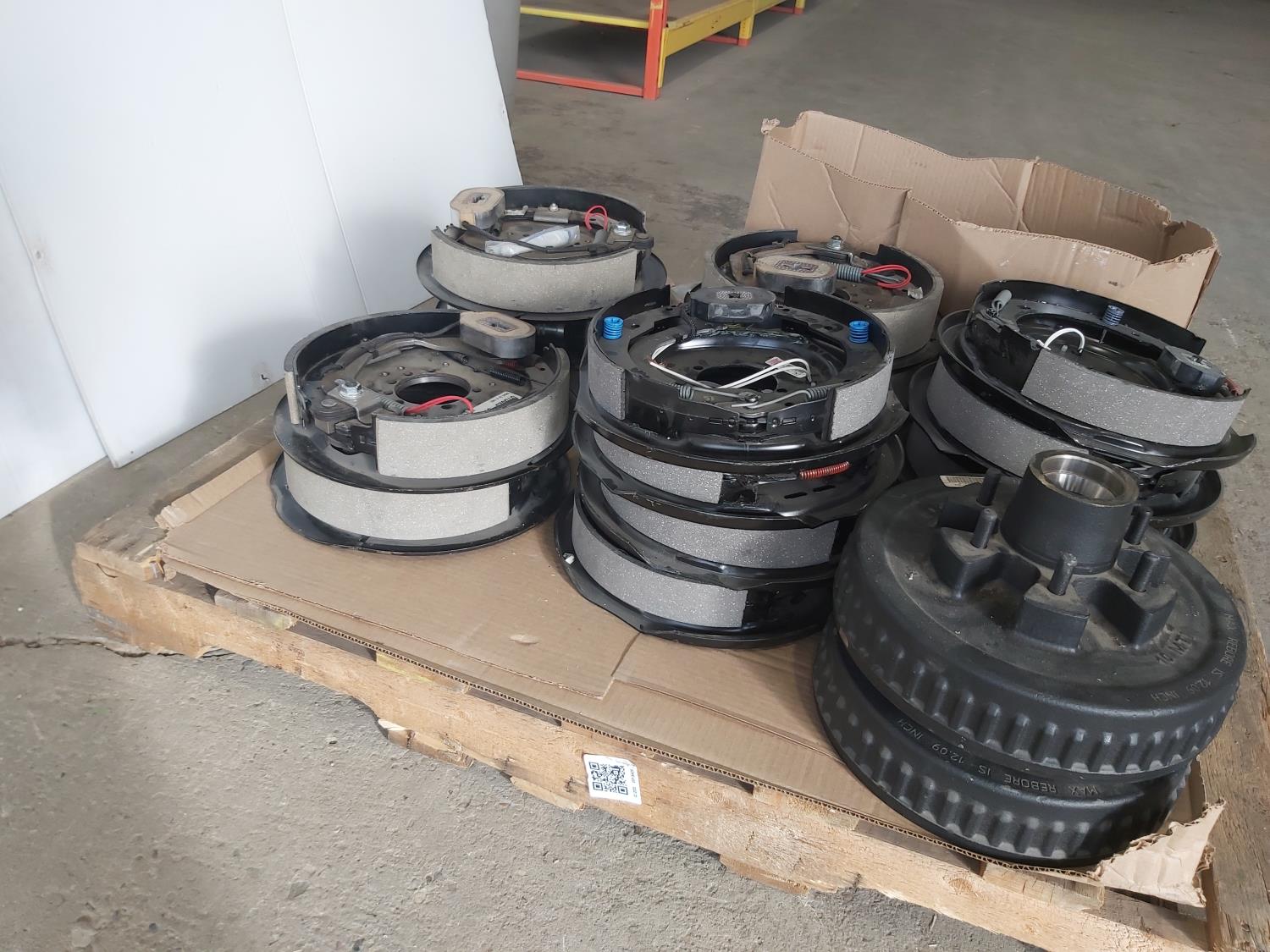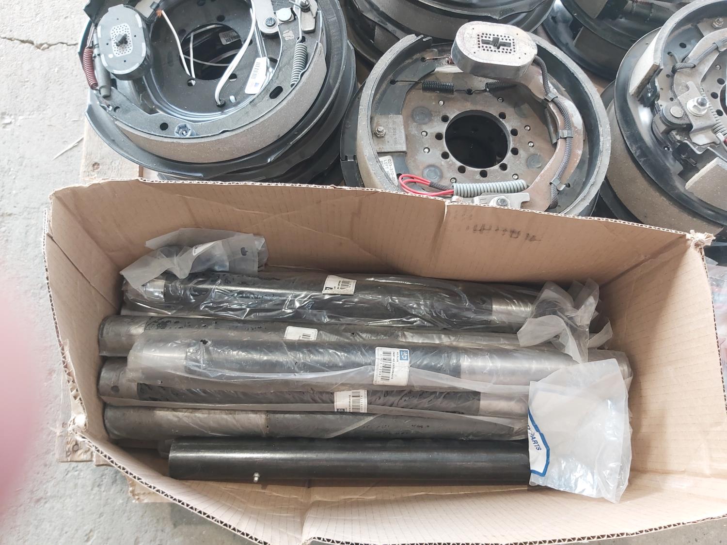 (13) cam tube enclosures, bushings, (16) brake shoes kits, (2) wheel hubs