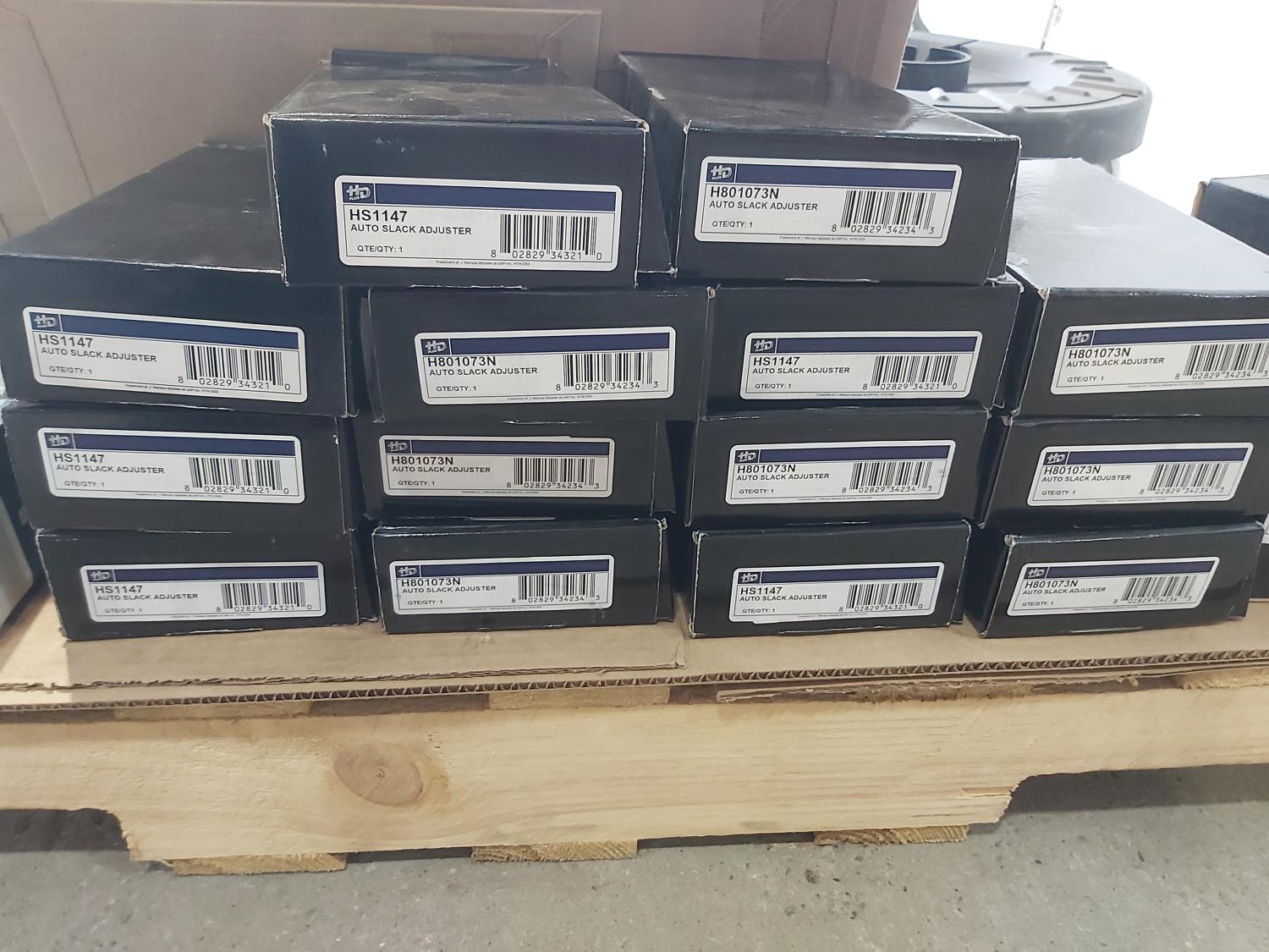 (9) drum brake dust shields, (14) brake/slack adjusters, (2) track rod ends, (4) cam shaft repair kits, miscellaneous fittings and gaskets