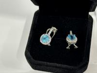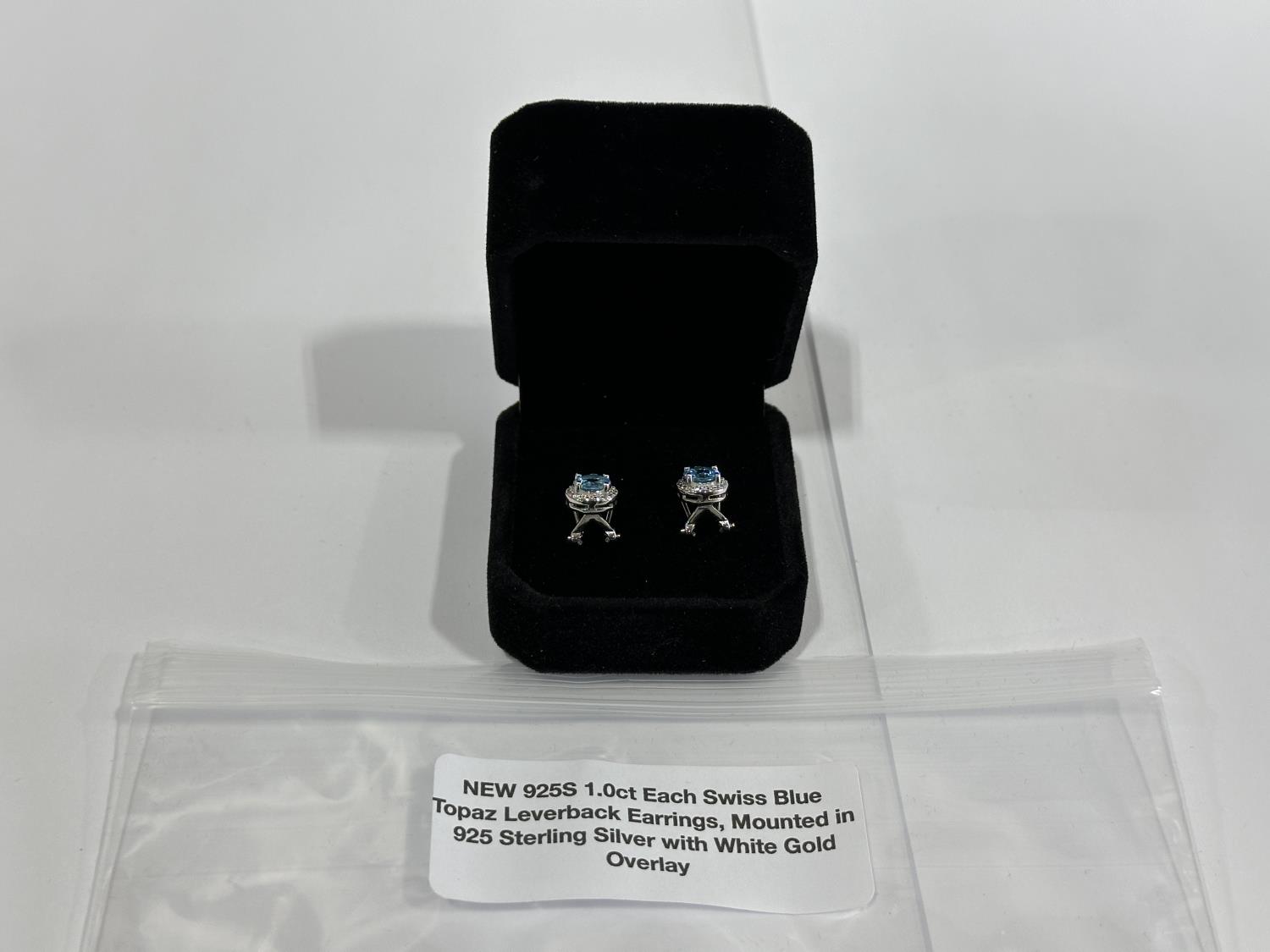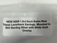 1992 Smartlife 925S 1.0 Carat Each Swiss Blue Topaz Leverback Earrings (Unused)