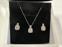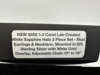 1983 Smartlife 925S 1.0 Carat Lab-Created White Sapphire Halo Stud Earrings and Necklace Set (Unused)