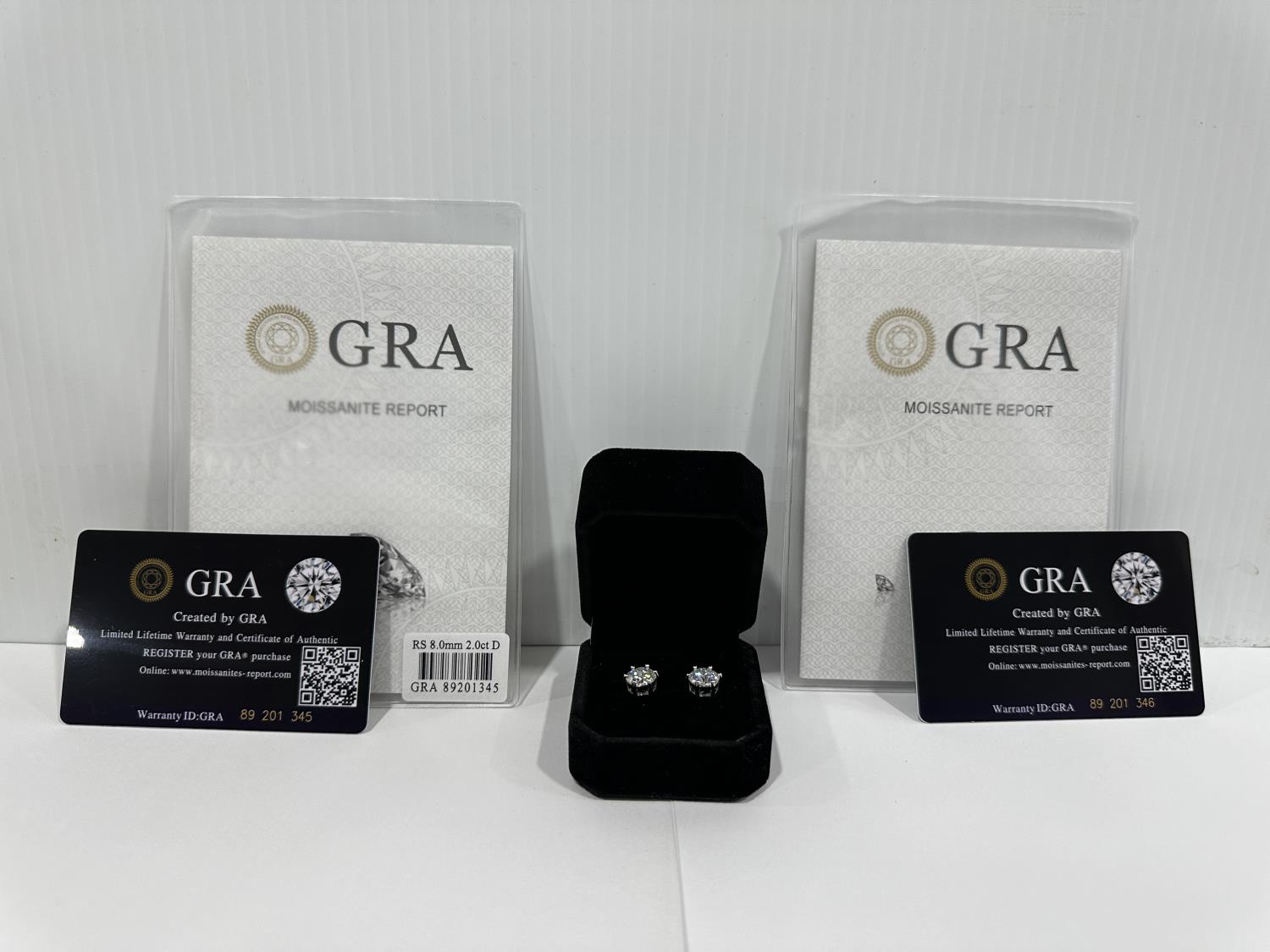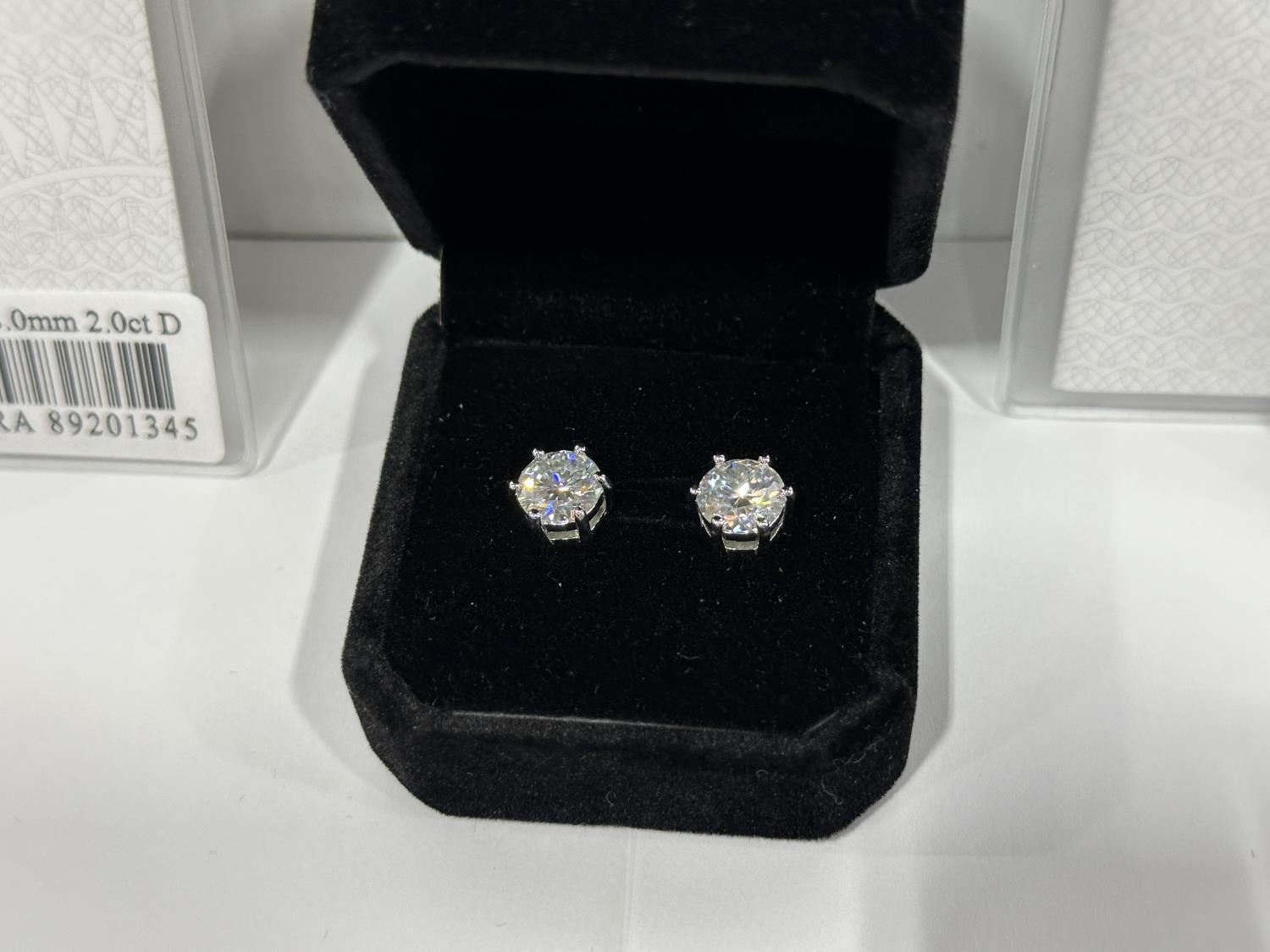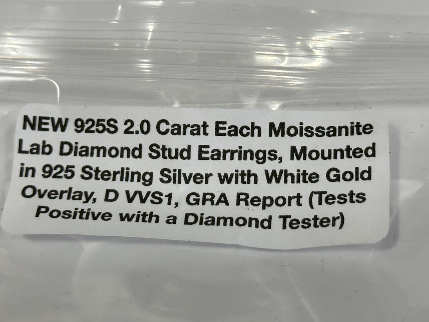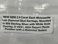 1986 Smartlife 925S 2.0 Carat Each Moissanite Lab Diamond Stud Earrings (Unused)