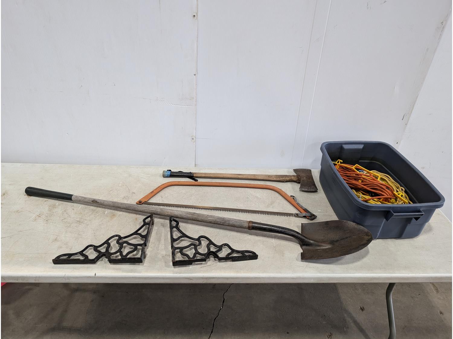 1646 Spade, Double Blade Axe, Metal Stove Shelf Brackets, Rope and Electrical Cords