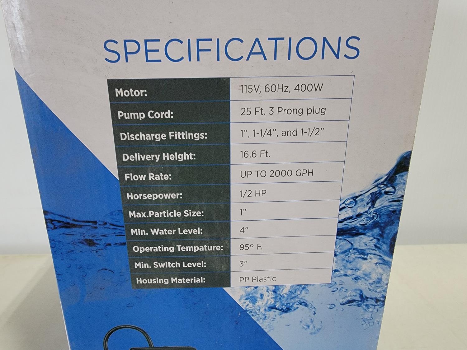 1509 Submersible 1/2 HP Sump Pump (Unused)