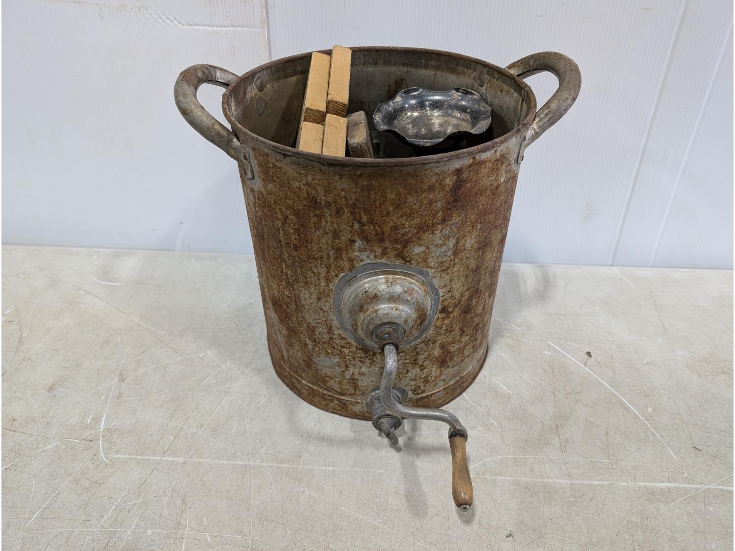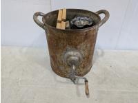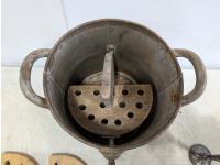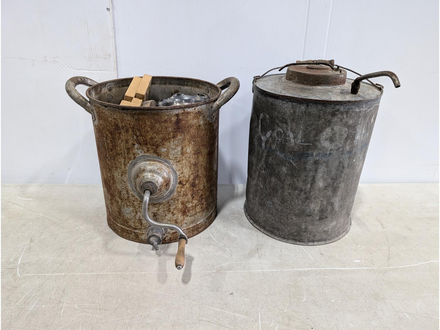 1629 Vintage Butter Churn, Churn Paddles, Vase and Metal Kerosene Container