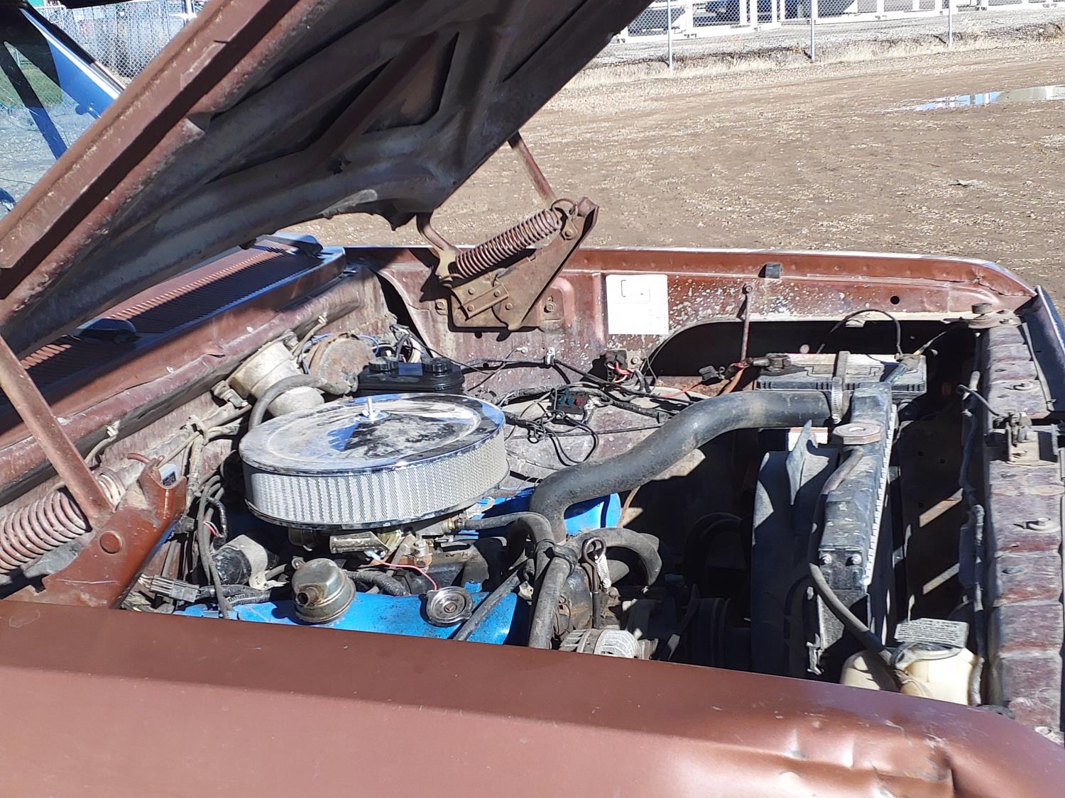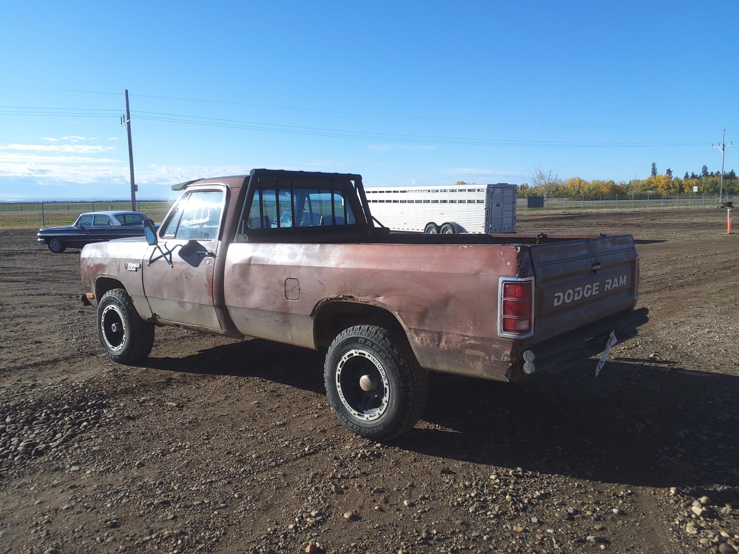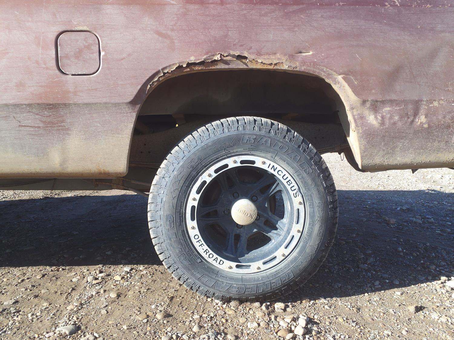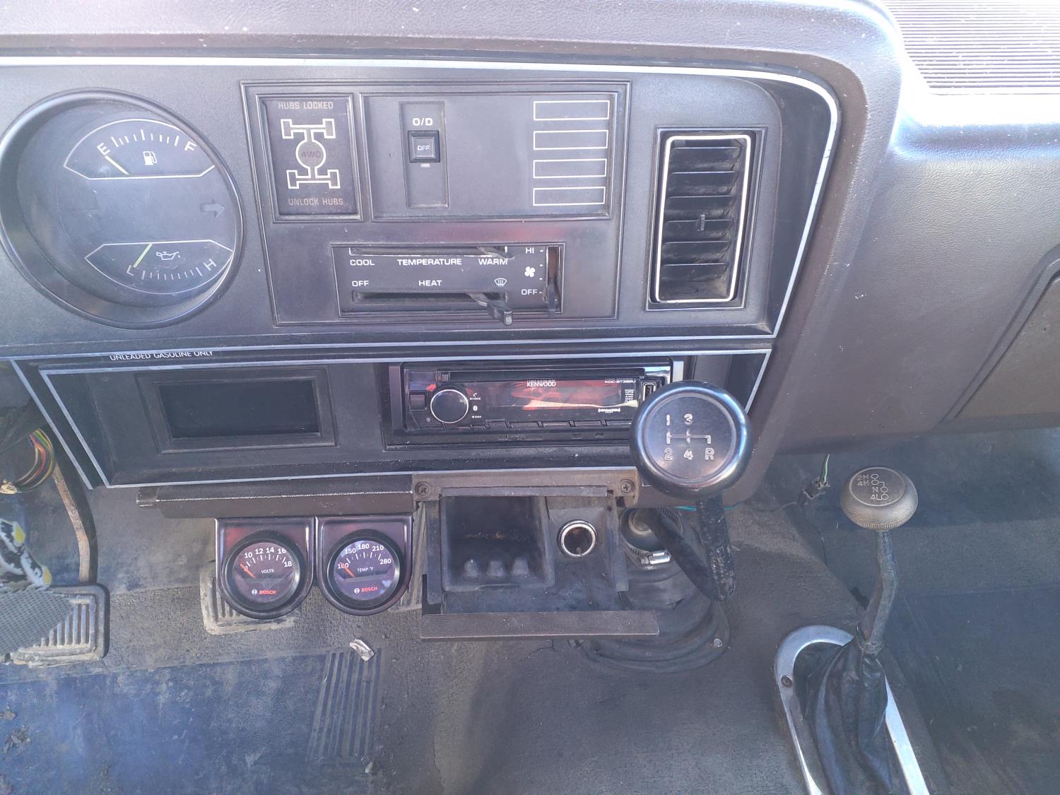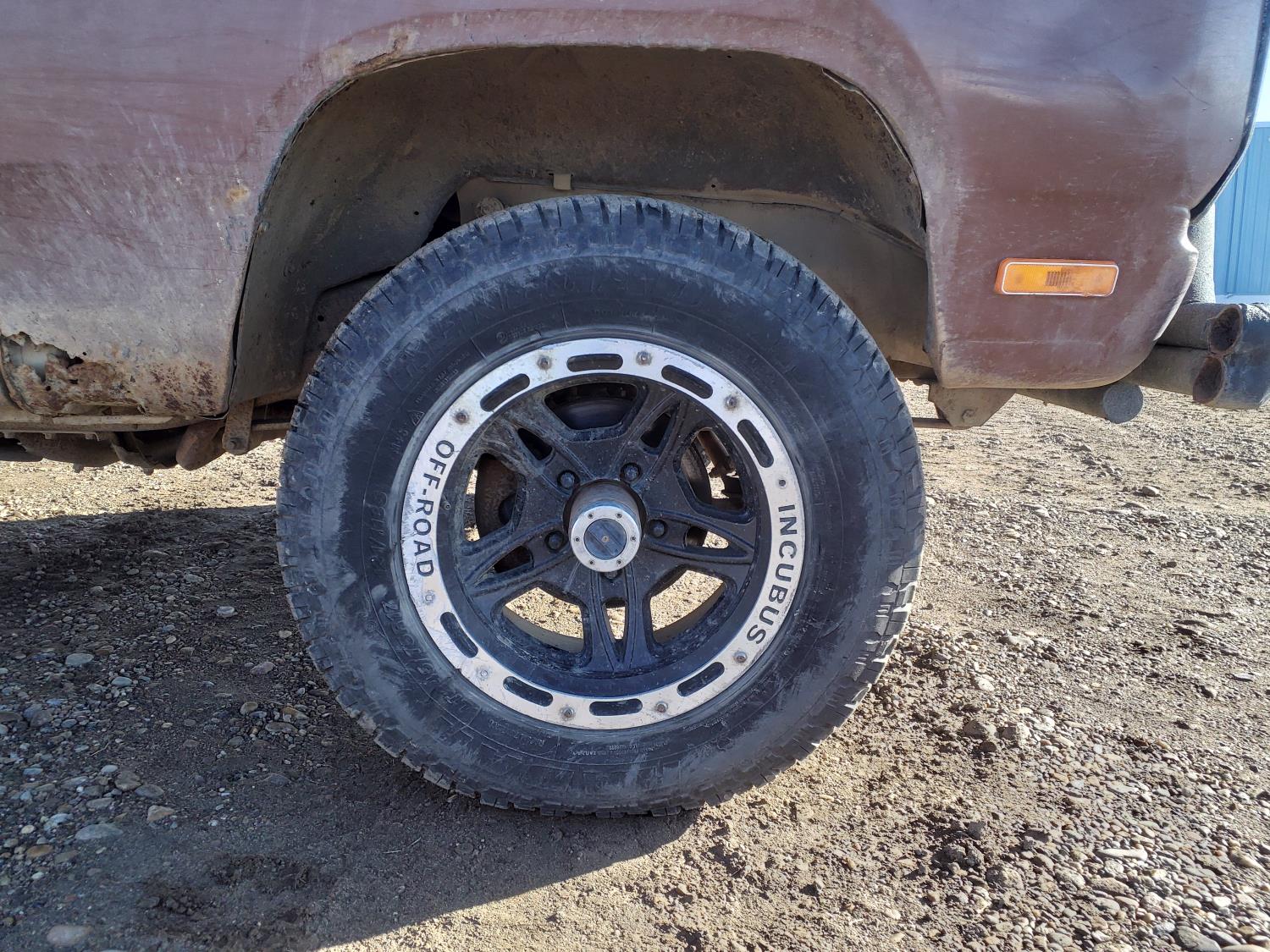 5.2 L, V8, gas, 4 speed manual transmission, upgraded stereo, 8 ft box, 245/75R17 tires