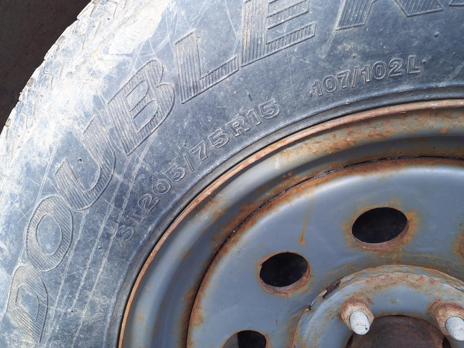 82 inch wide deck, wood deck, spring suspension, ball hitch, stake pockets, 3500 lb axles, 205/75R15TIRES tires