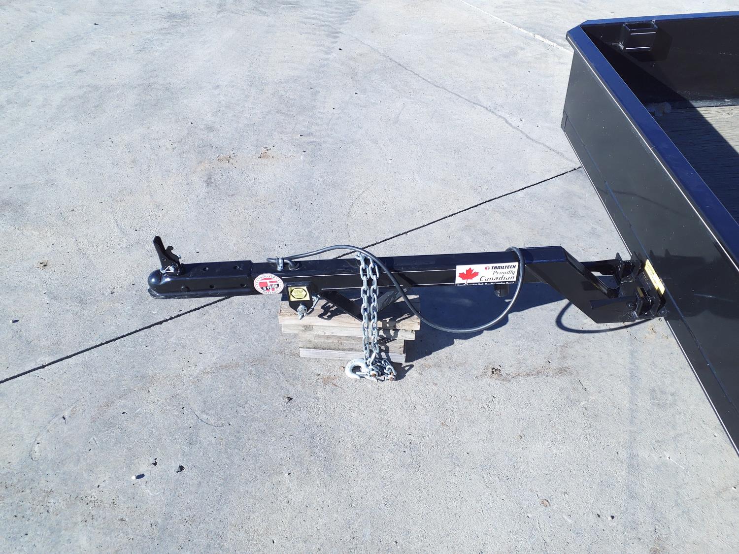 72 inch wide deck, wood deck, spring suspension, ball hitch, stake pockets, 2998 lb axles, 205/75R15 tires