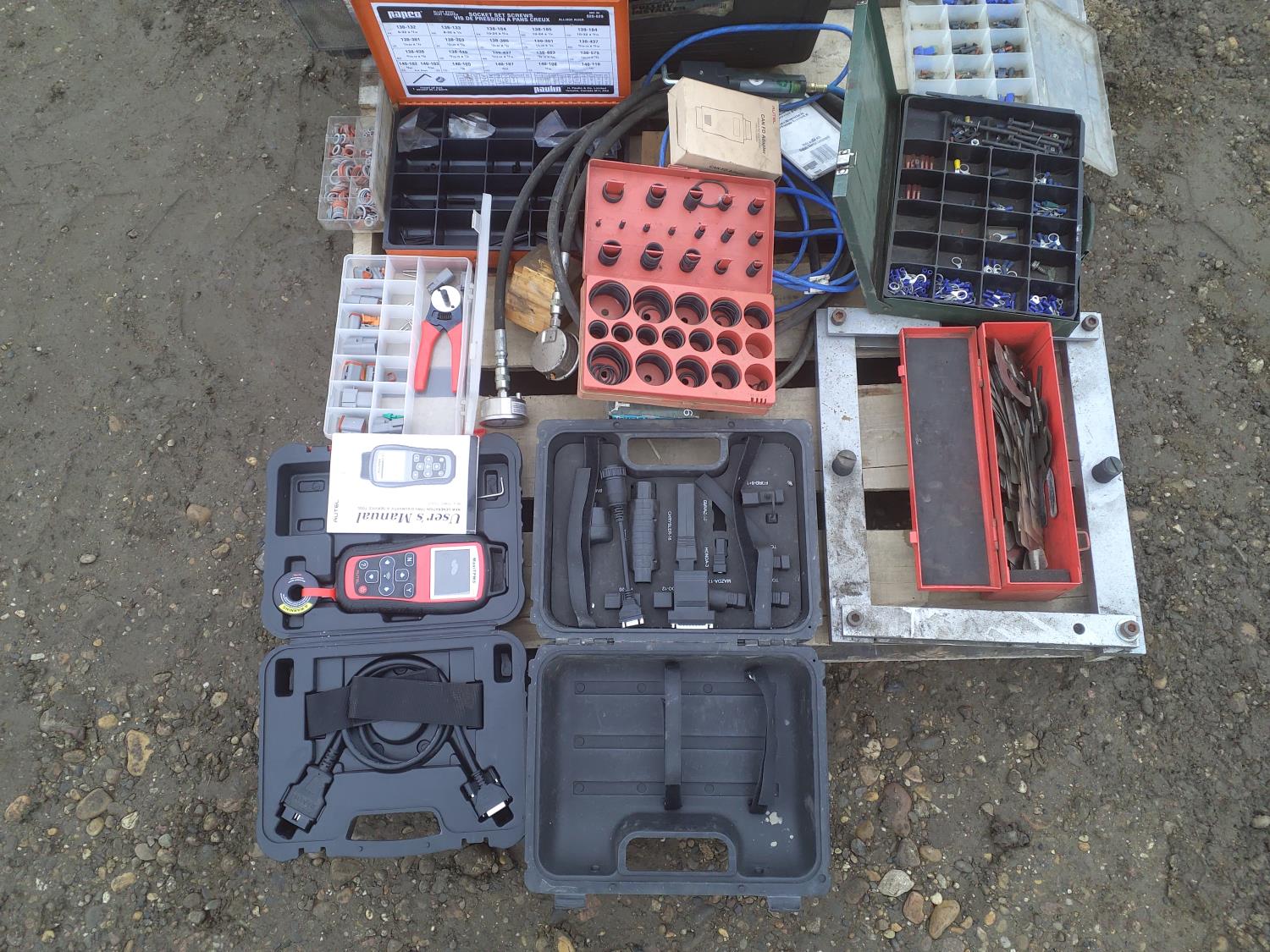 miscellaneous tools, extension cord, fuses, tool box, O-rings, connecters, Avtel diagnostic and service tool, harmonic balancer puller
