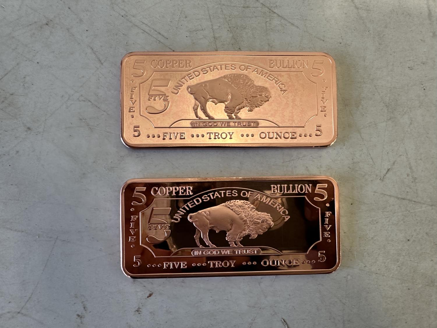 5087 (2) 5 oz Copper Bullion Bars (Unused)