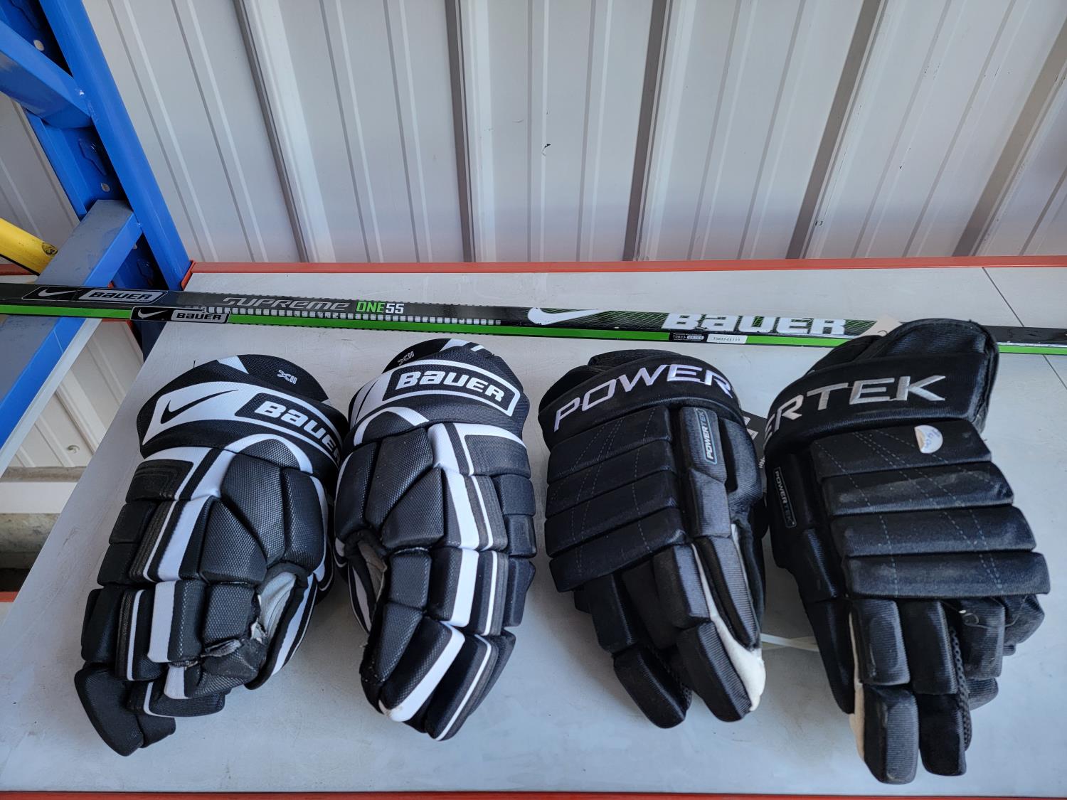 5161 (2) Pairs of 15 Inch Hockey Gloves and Hockey Stick