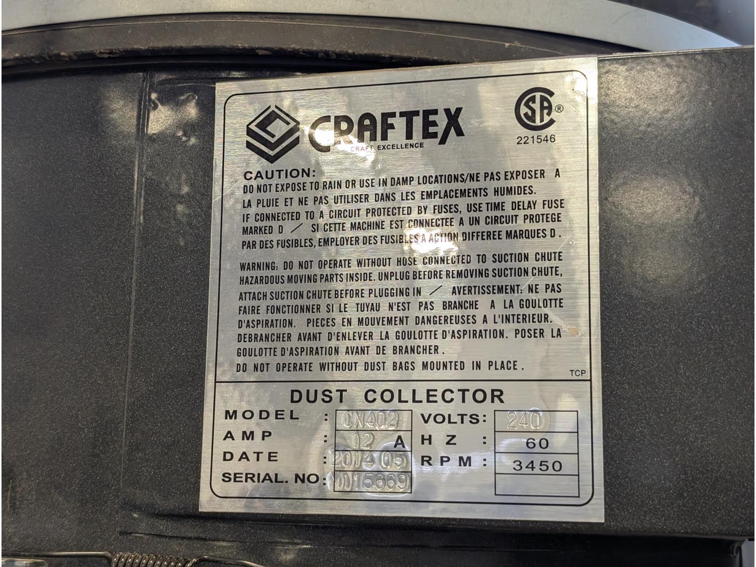 5191 Craftex CX-Series Dust Collector with Qty of Ducting
