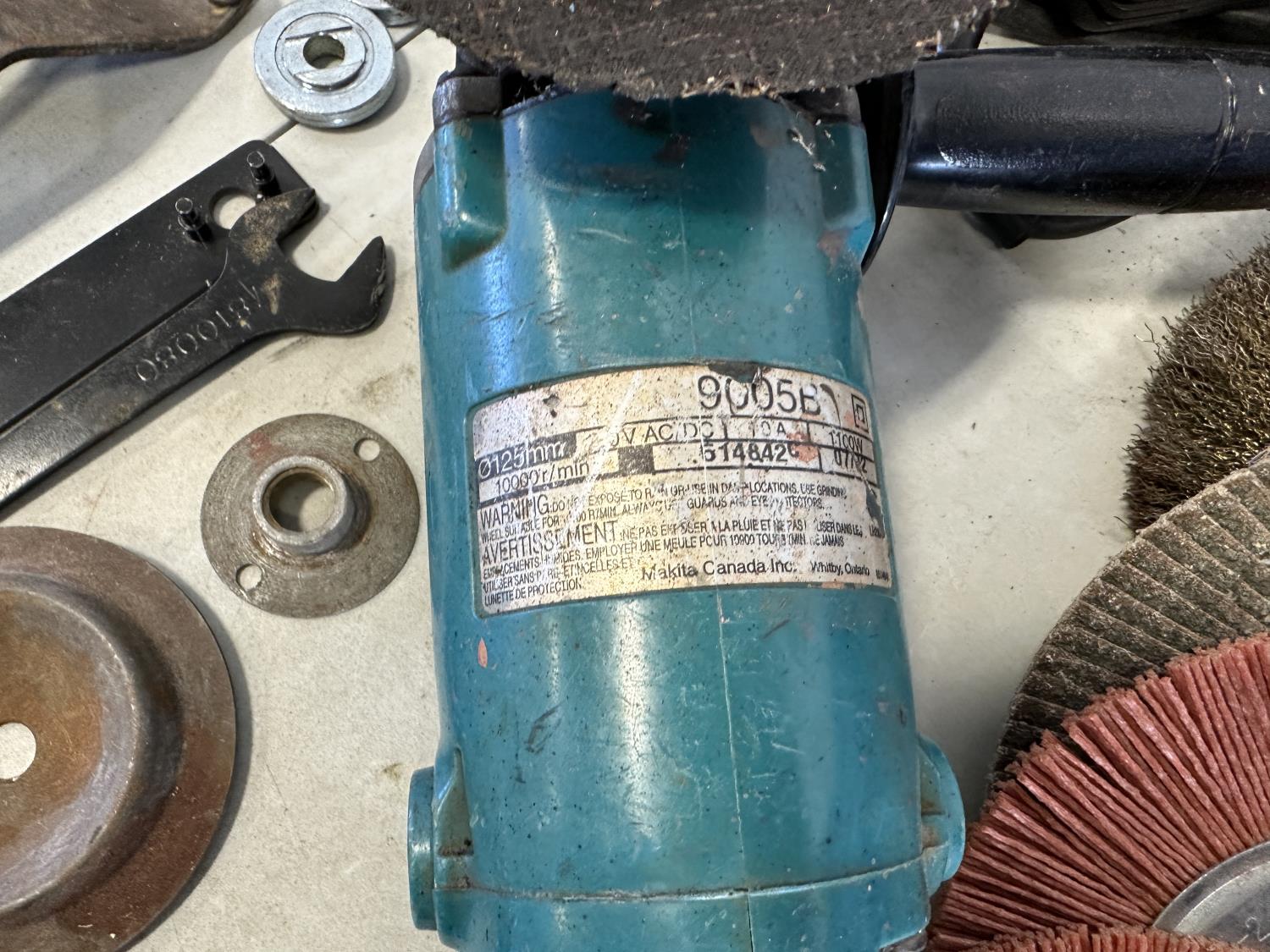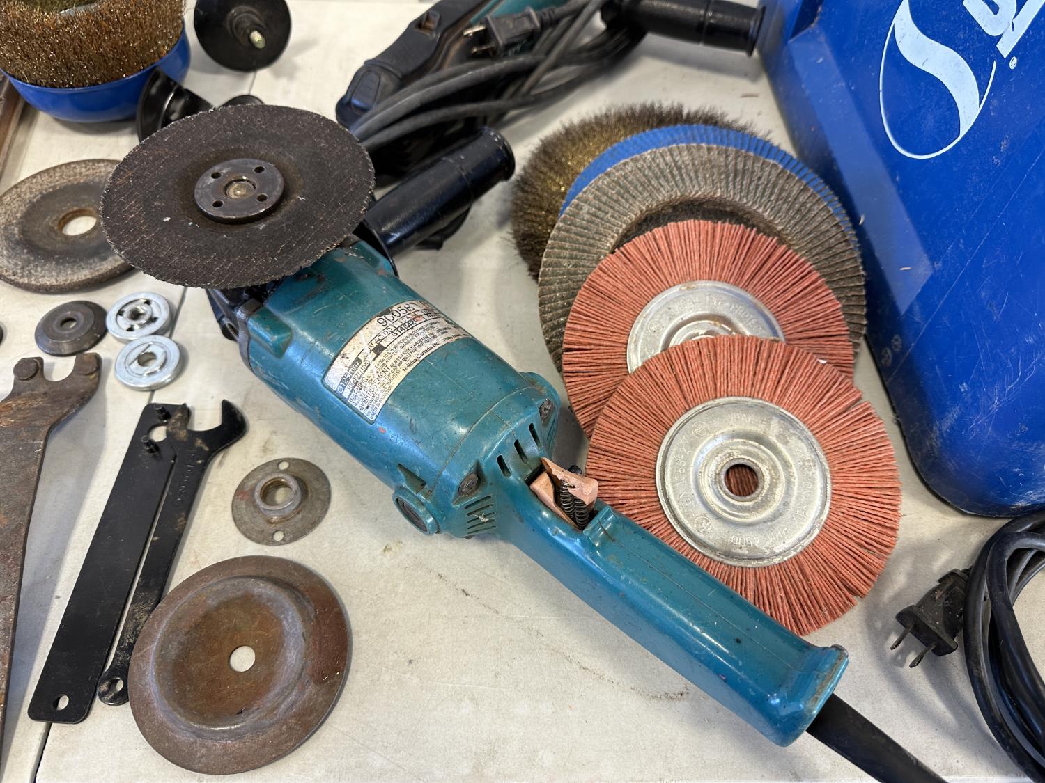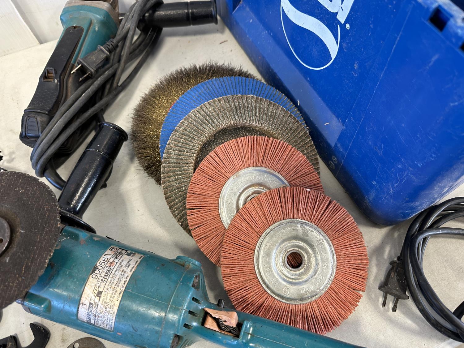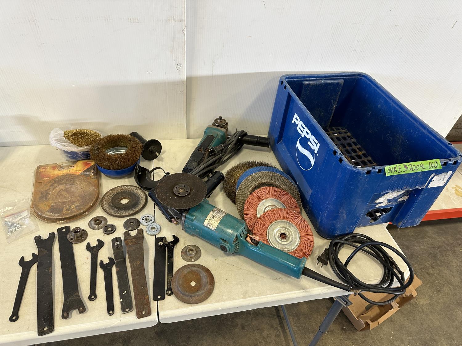 5113 Makita Angle Grinders and Assorted Discs and Wire Wheels