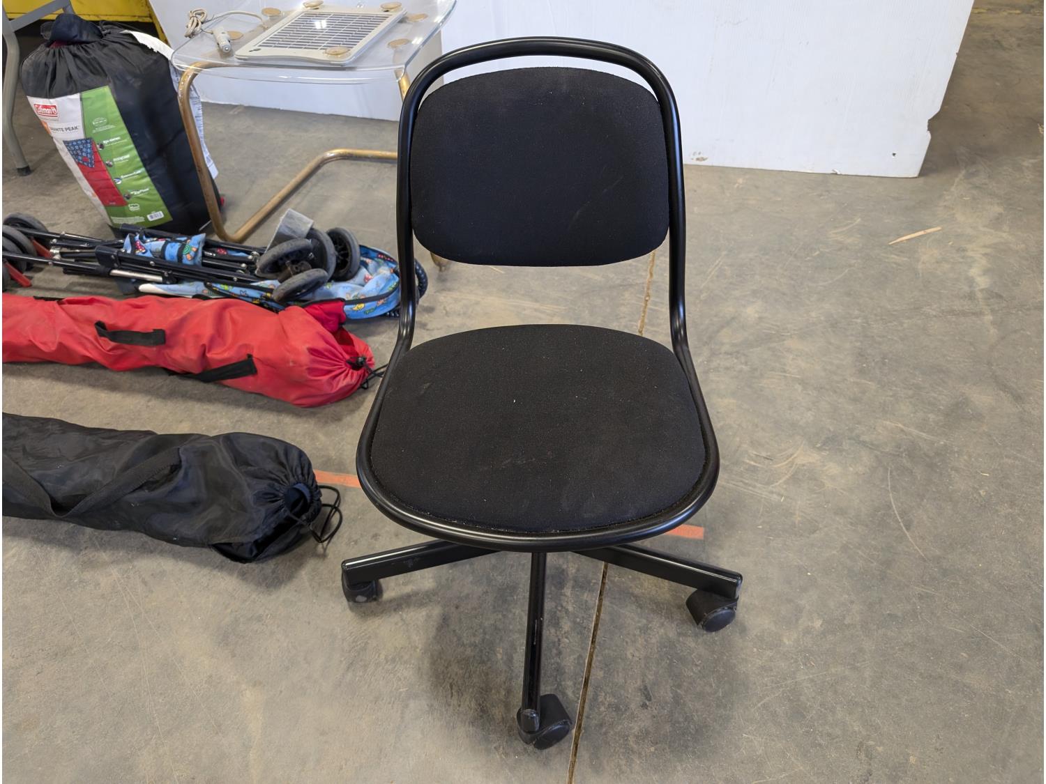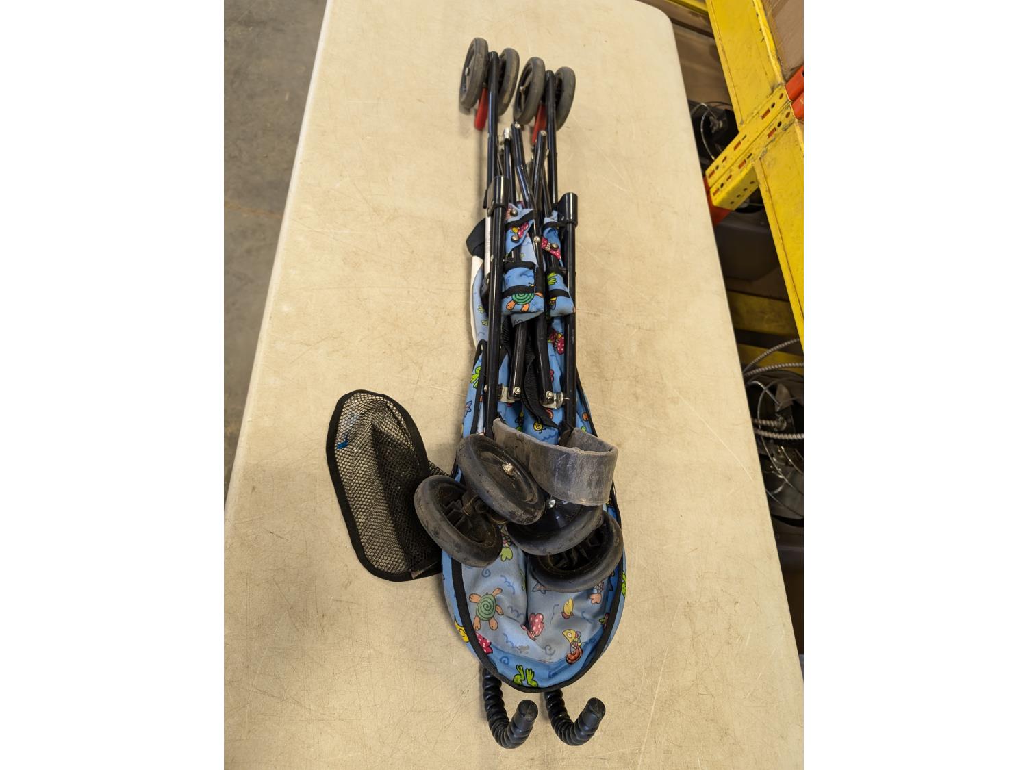 (2) chairs, mobility walker, (2) camping chairs, umbrella stroller, sleeping bag