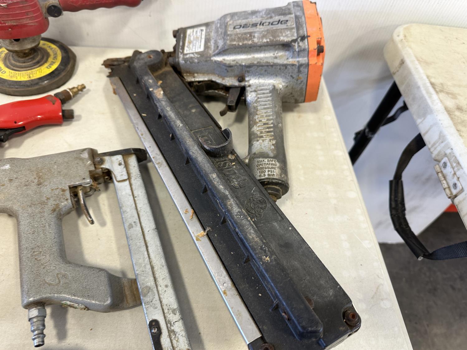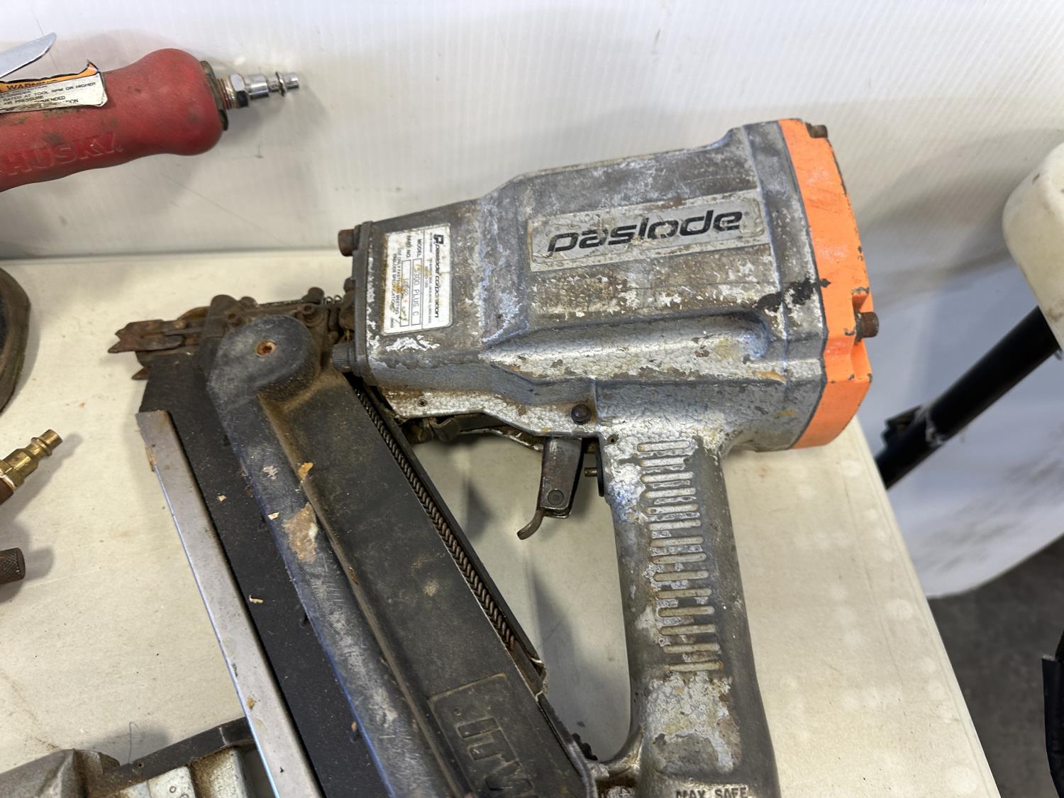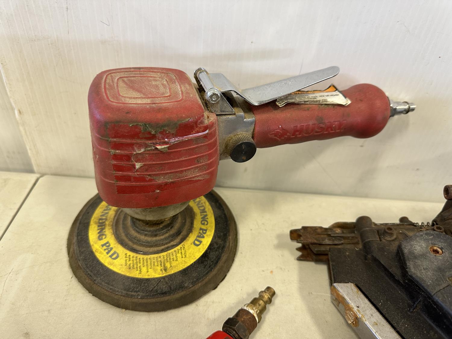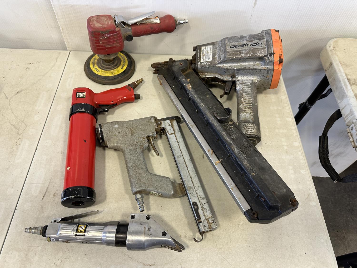 Paslode framing nailer, Senco brad nailer, Power Fist air shears, Power Fist air caulking gun, Husky sander