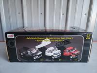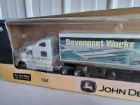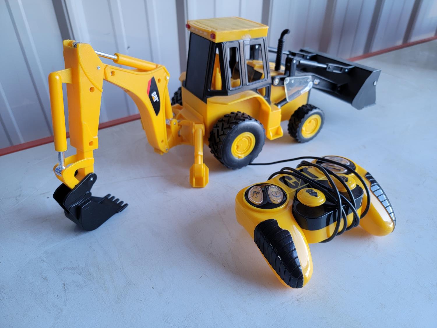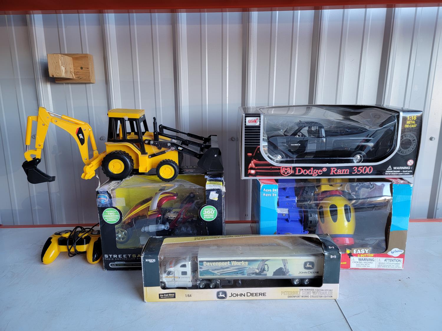 CAT backhoe, stunt car, John Deere Peterbilt Semi with trailer, Dodge Ram 3500, excavator and dump truck