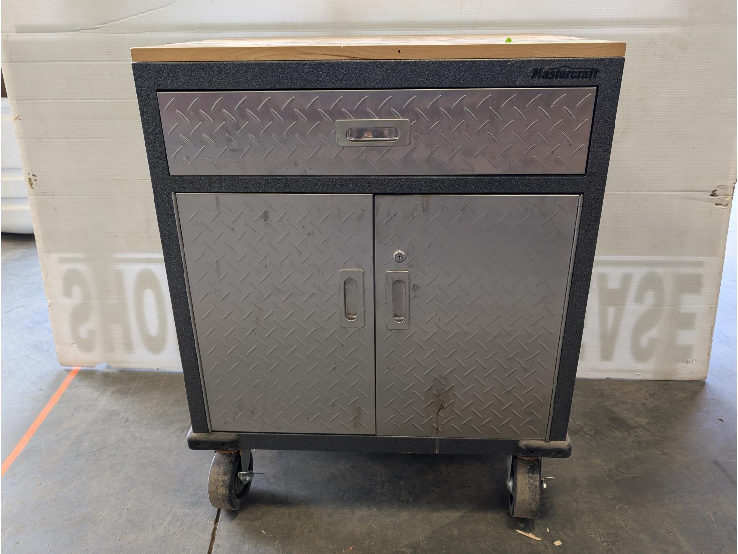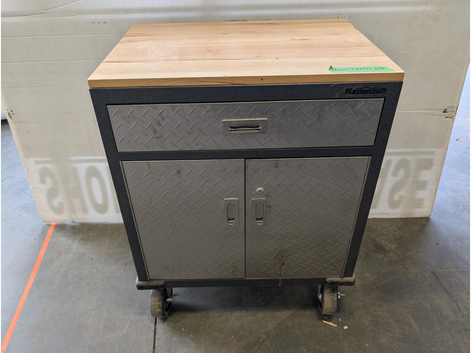 5196 Mastercraft Rolling Wood Top Cabinet