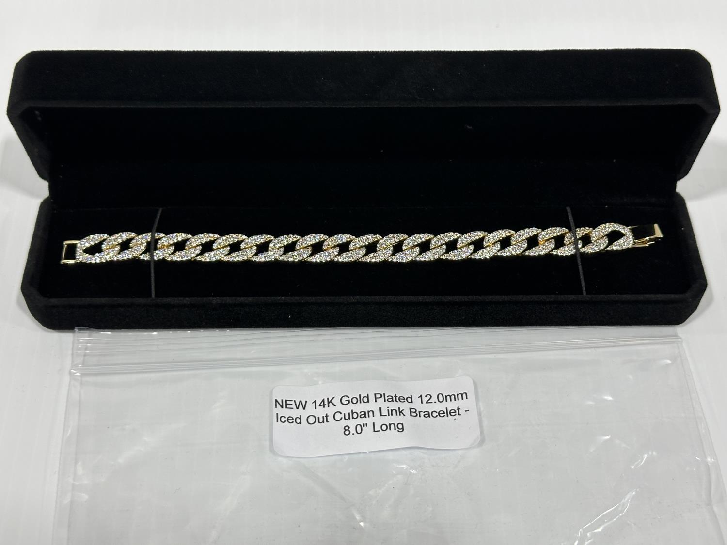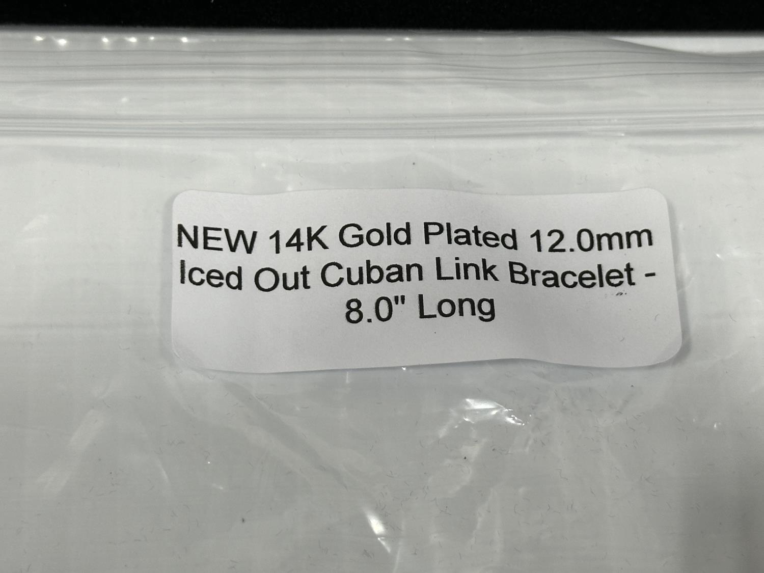 5417 Smartlife 14K Gold Plated 12.0 mm Iced Out Cuban Link Bracelet (Unused)