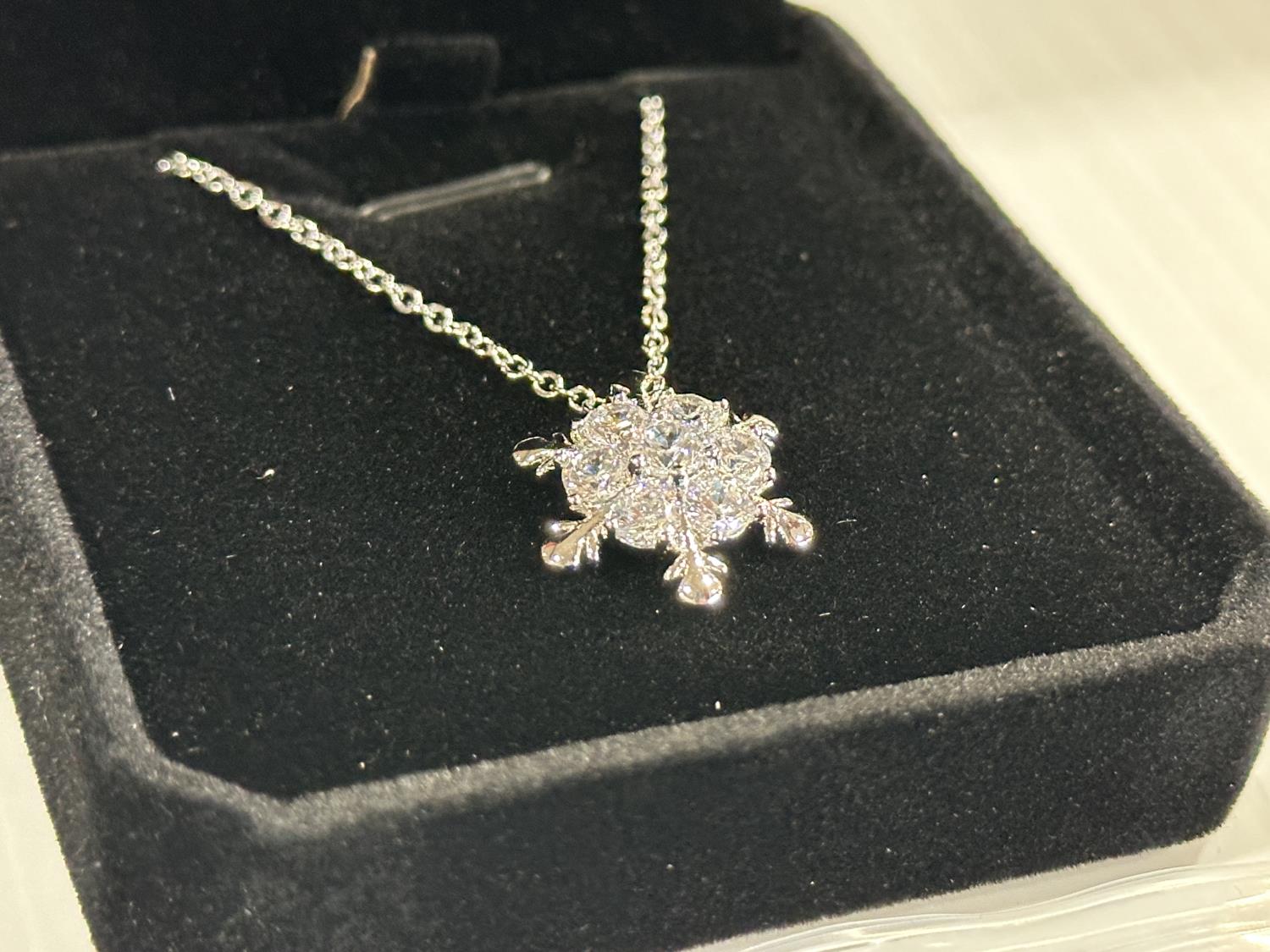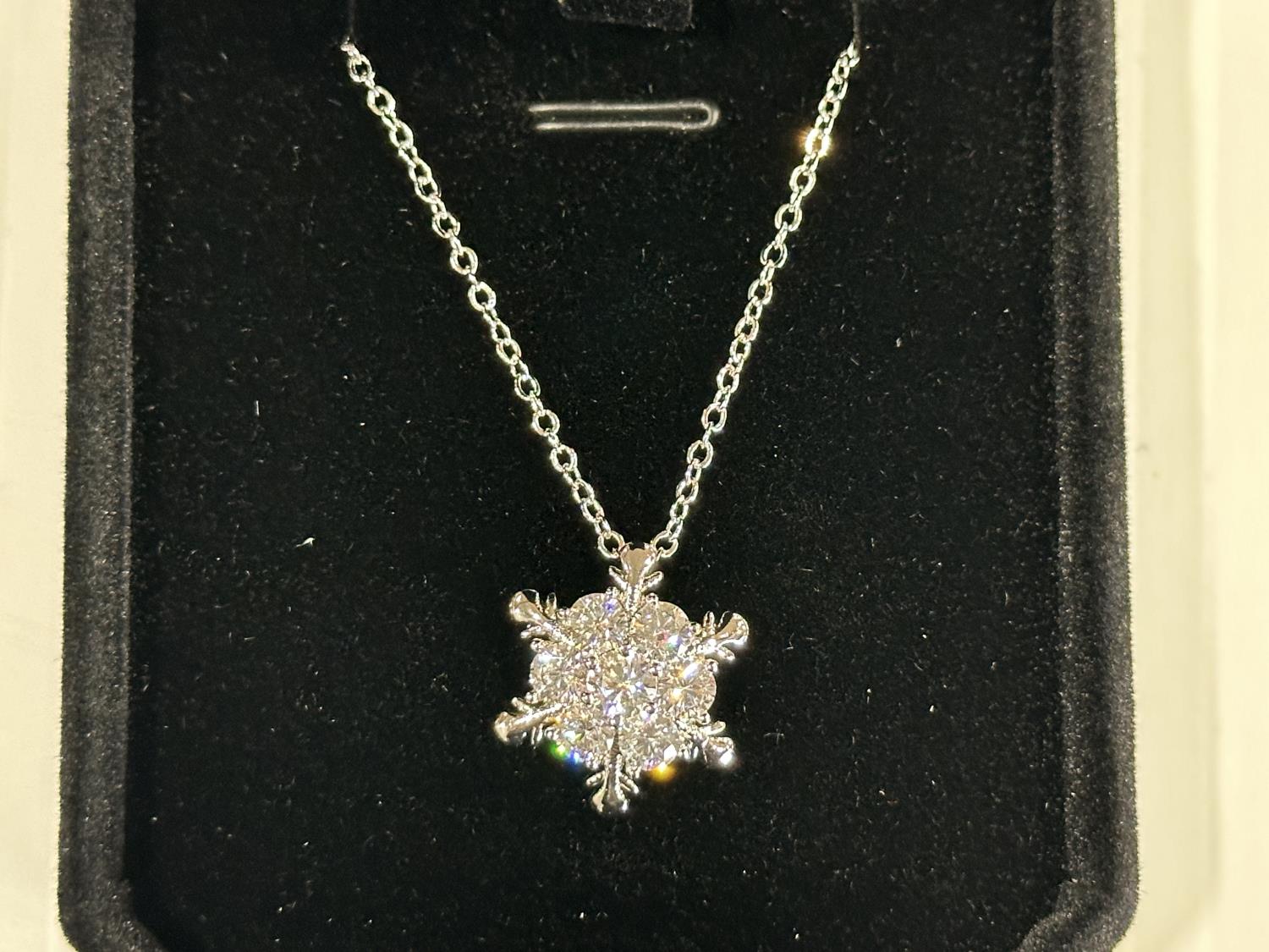 5423 Smartlife Platinum Plated Lab-Created White Sapphire Snowflake Necklace (Unused)