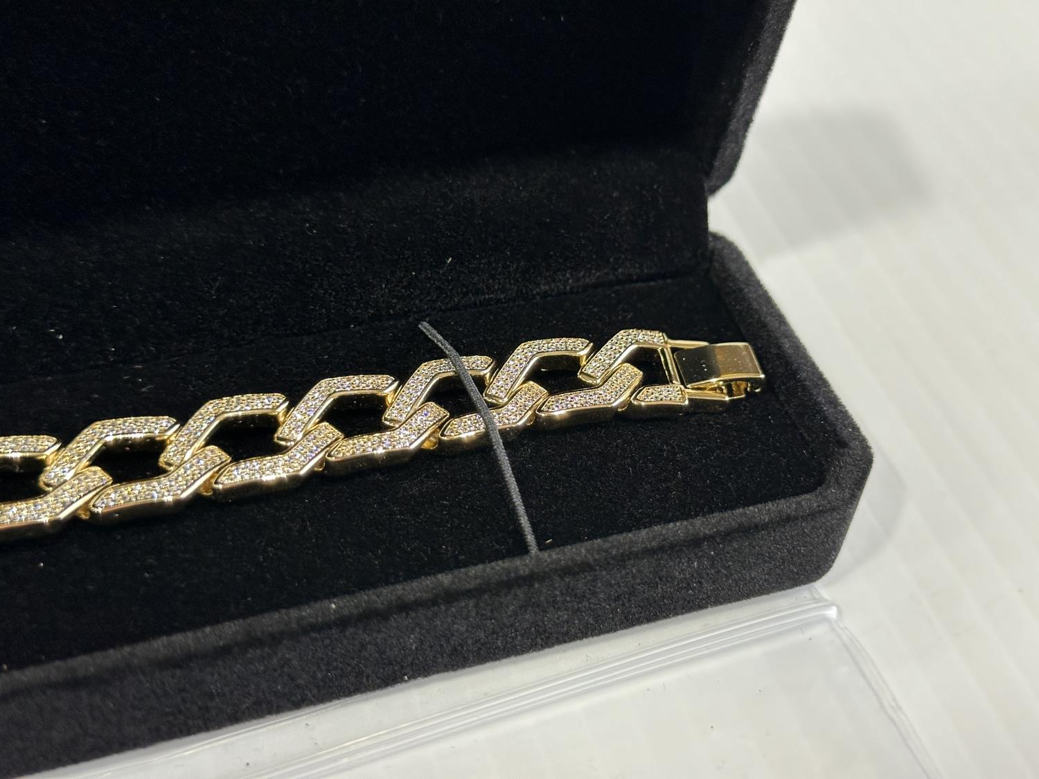 2114 14K Gold Plated 14.0 mm Iced Out Cuban Link Bracelet (Unused)