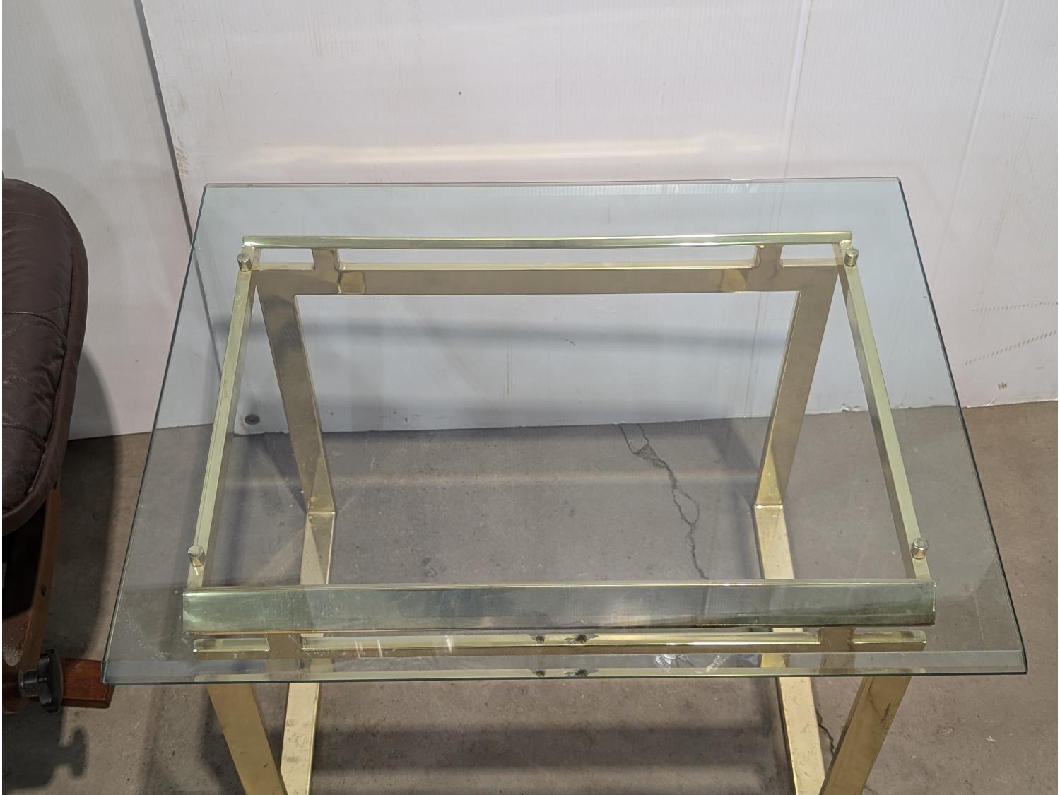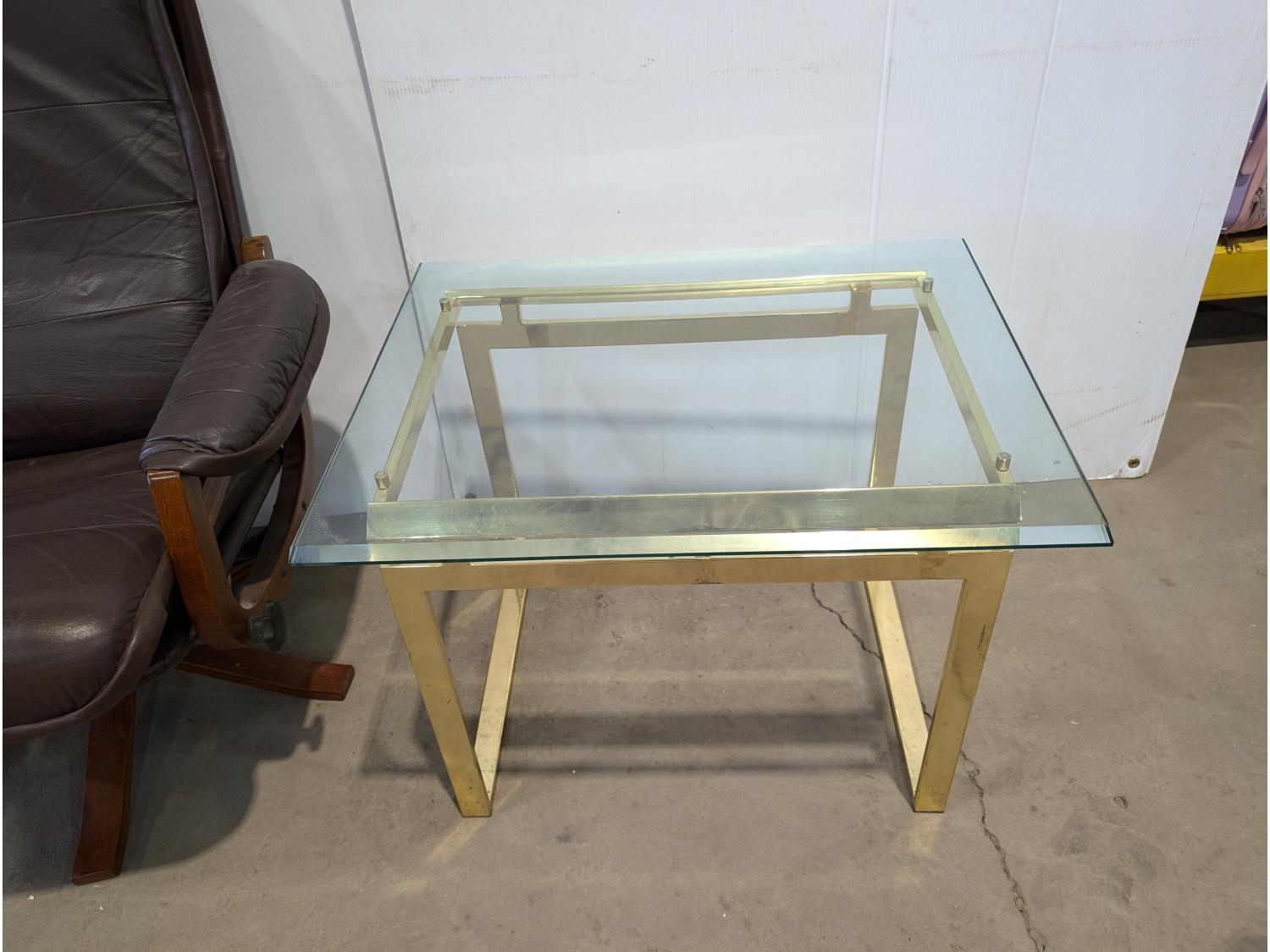 1712 (2) Leather Swivel Chairs and Glass-Top End Table