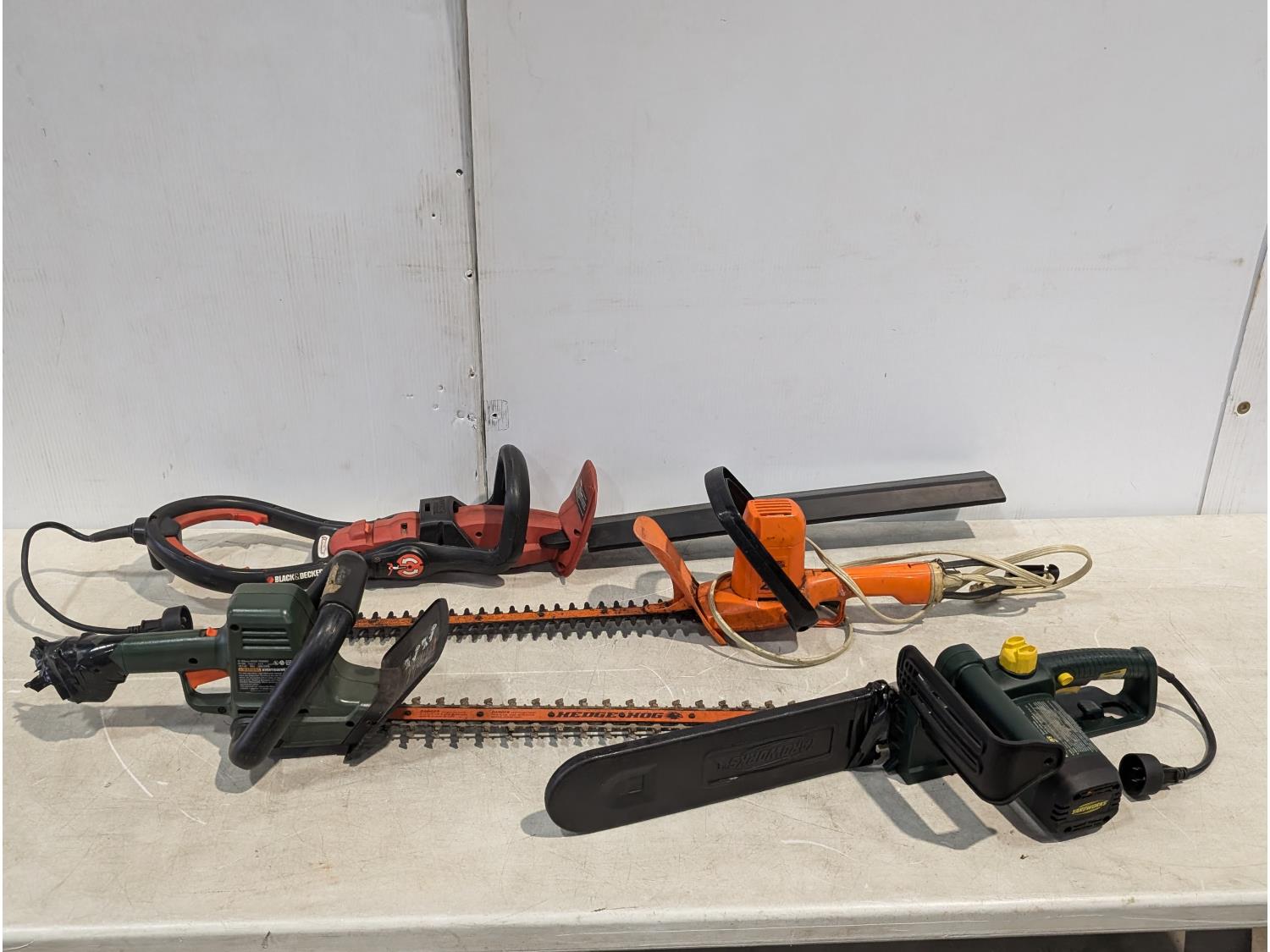 1755 (3) Electric Hedge Trimmers and Yardworks Electric Chainsaw