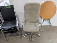 1760 (6) Chairs, Office Chair, Area Rug, Folding Table and Fan