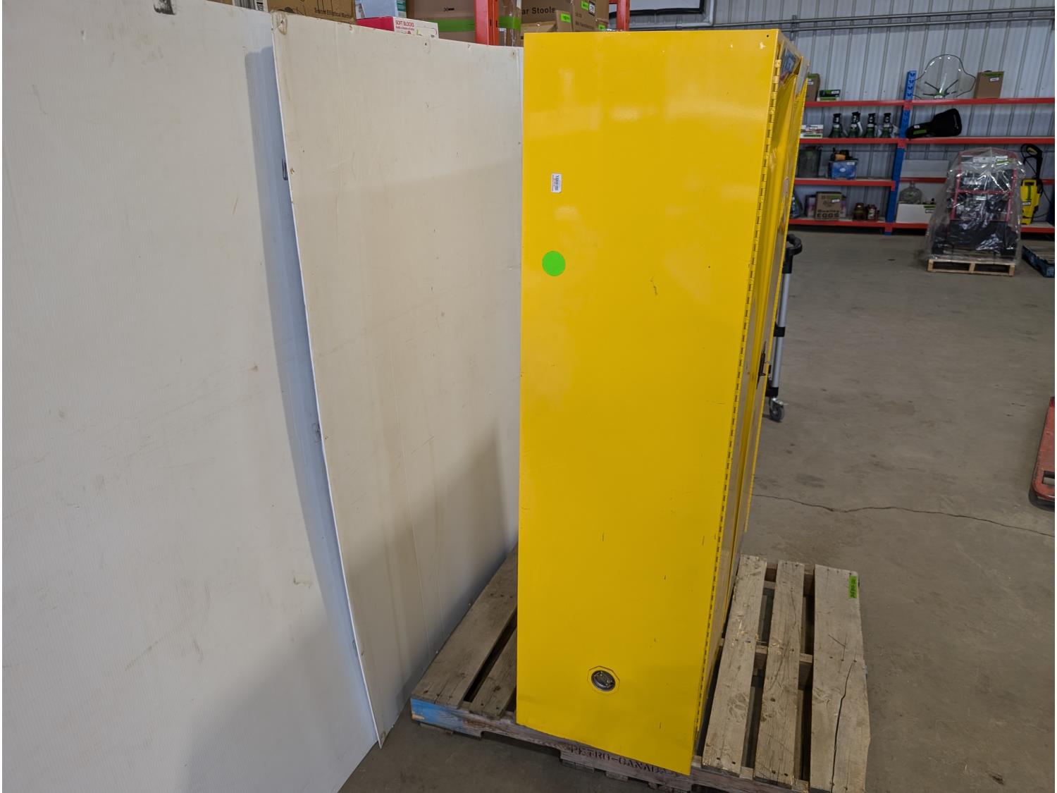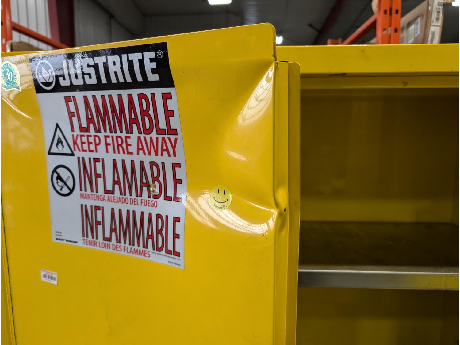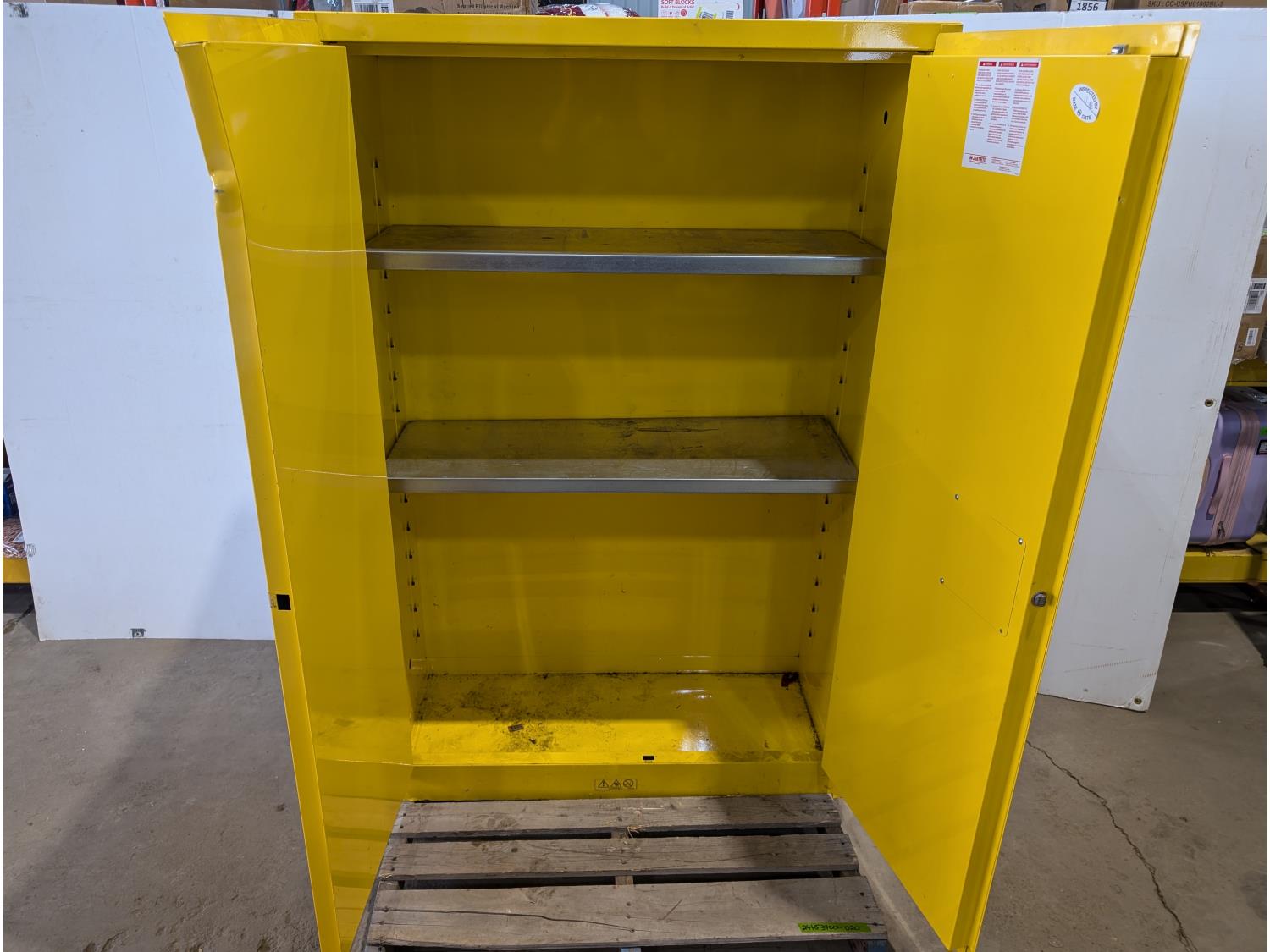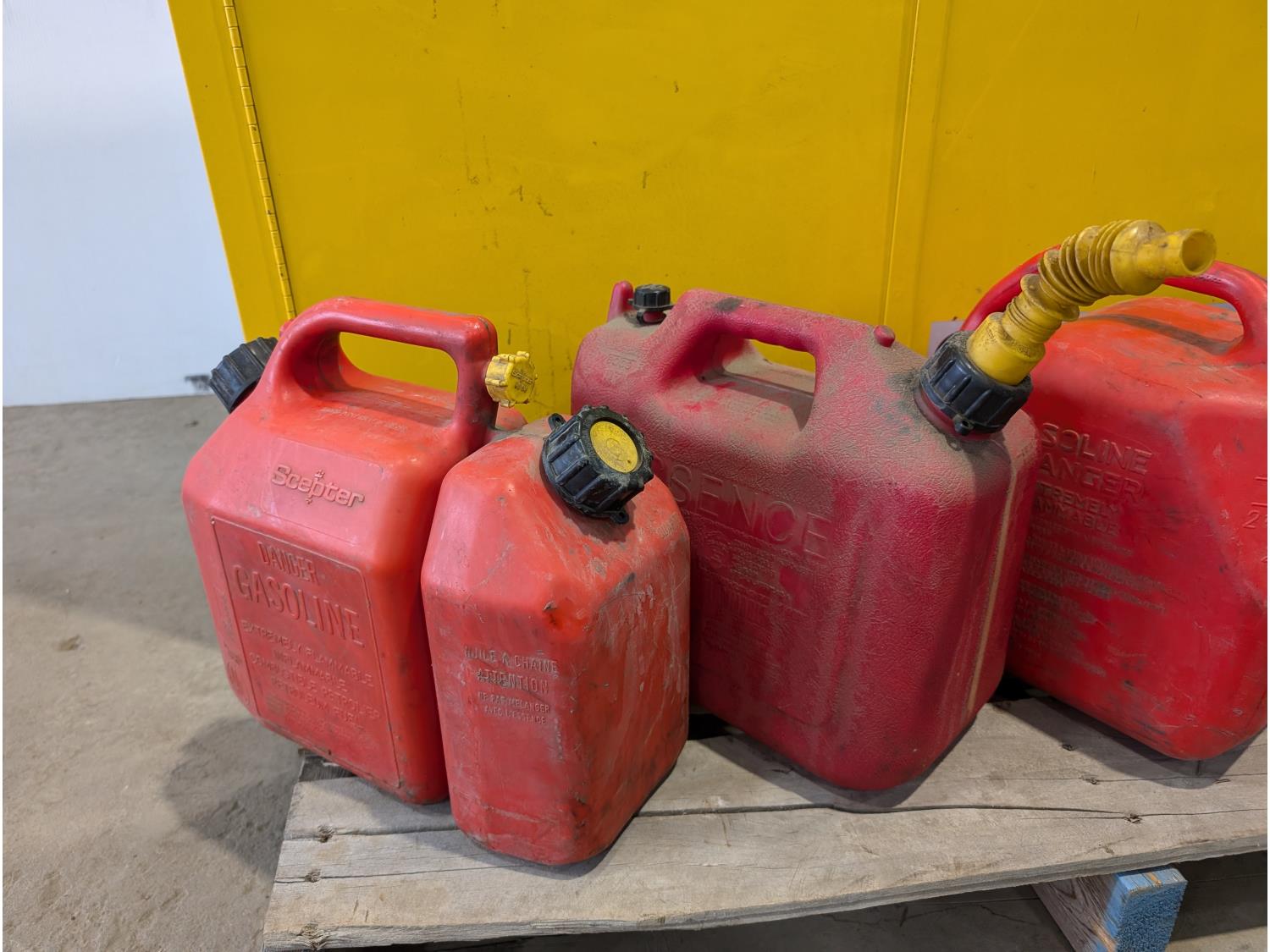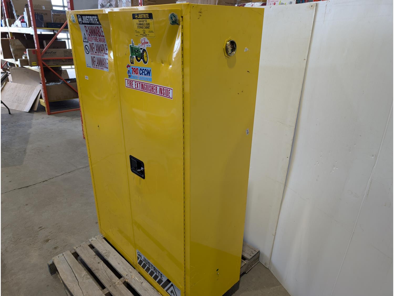 1362 Justrite Sure-Grip EX 45 Gallon Capacity Flammable Liquid Storage Cabinet and (4) Jerry Cans