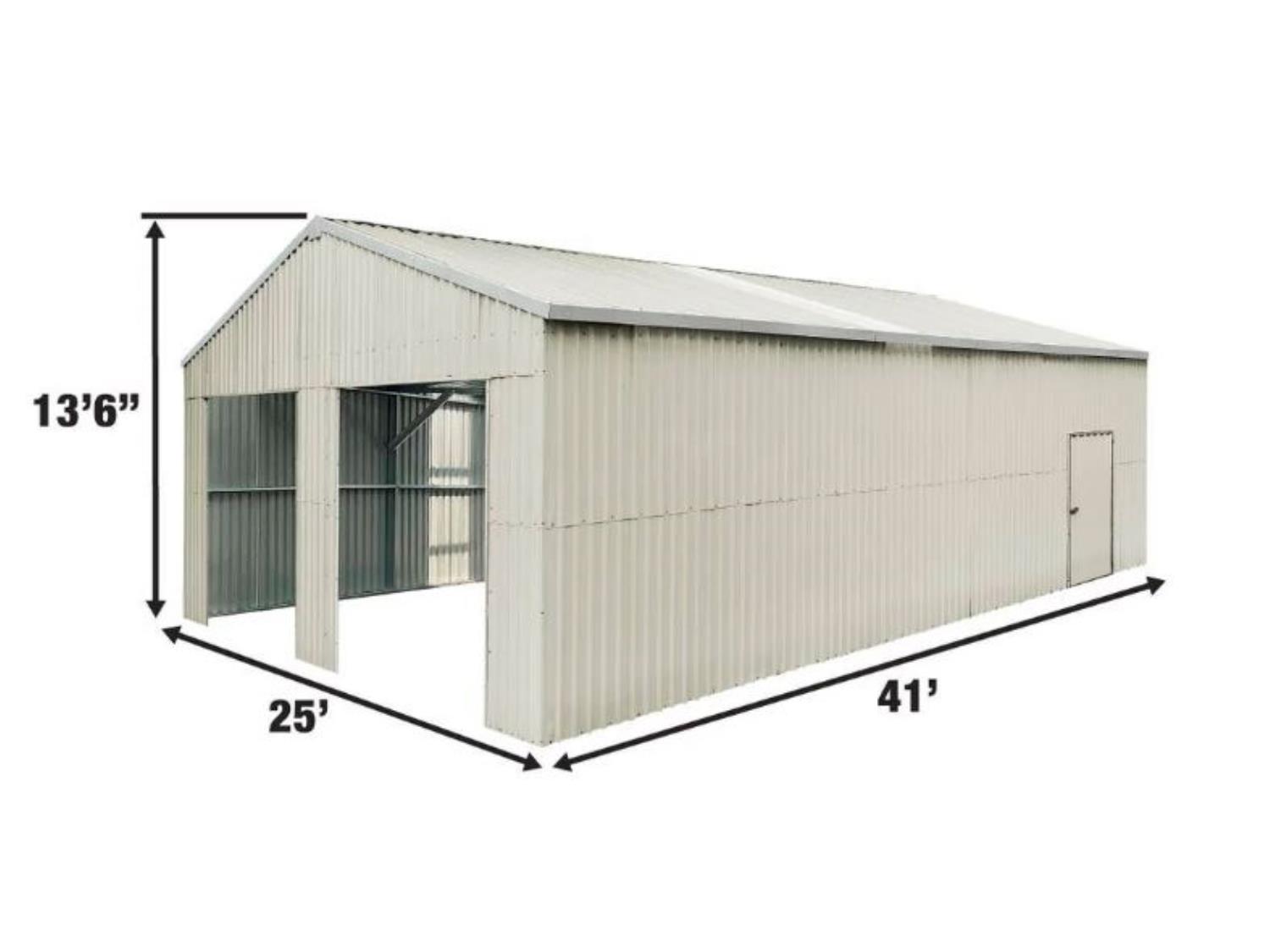 2328 TMG Industrial TMG-MS2541 25 Ft X 41 Ft Double Garage Metal Barn Shed with Side Entry Door (Unused)
