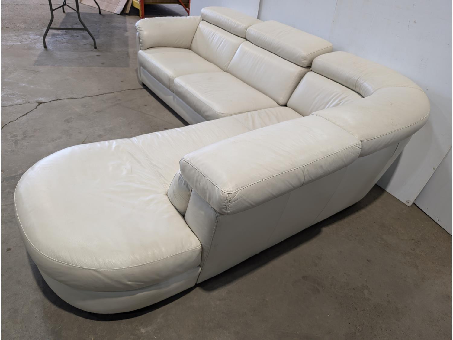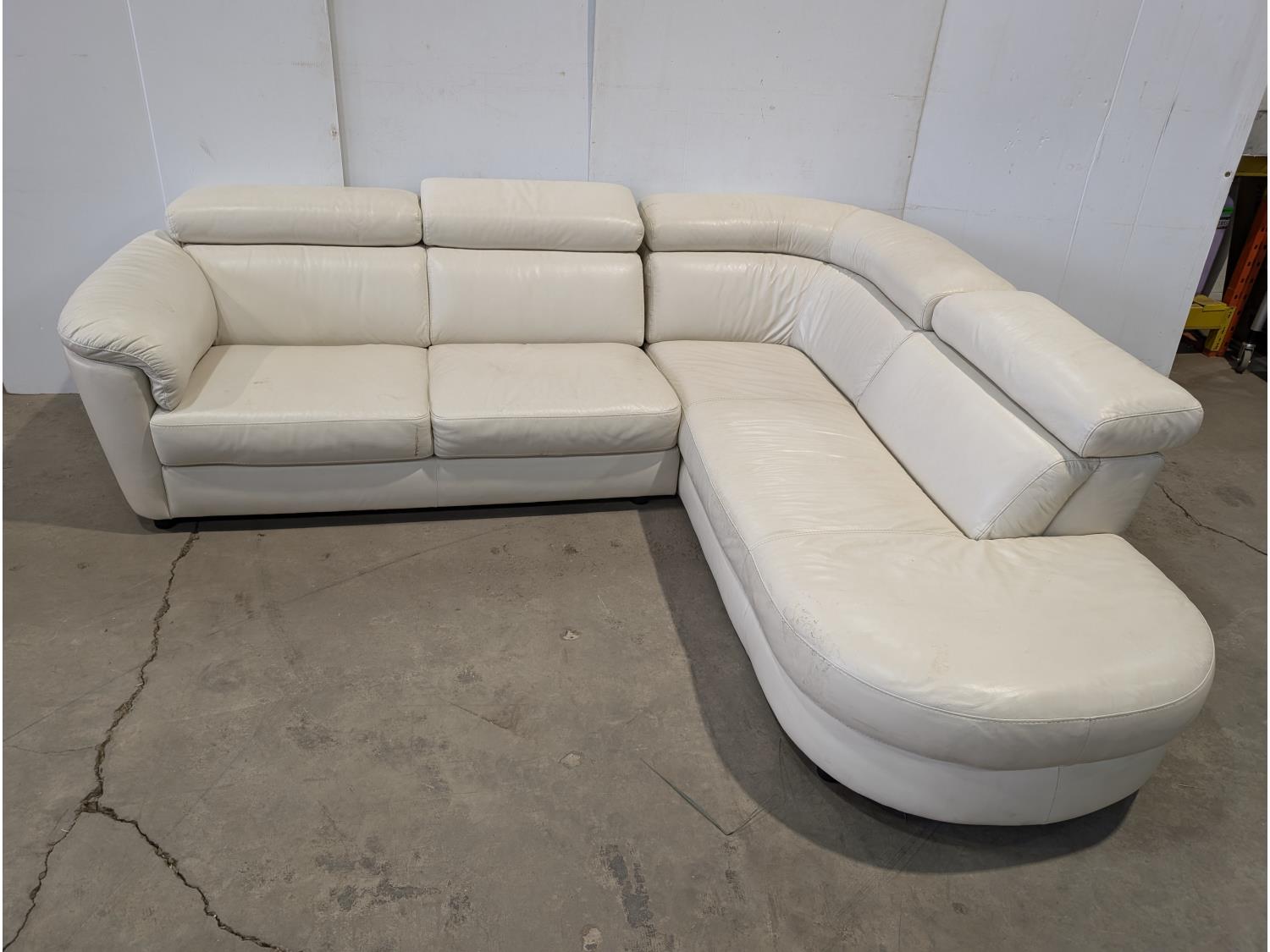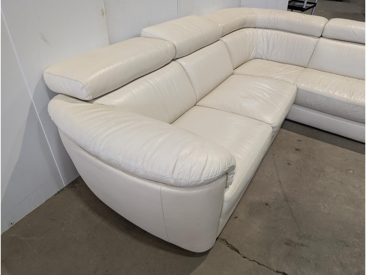 1708 White Leather Modern Sectional Couch with Adjustable Headrests