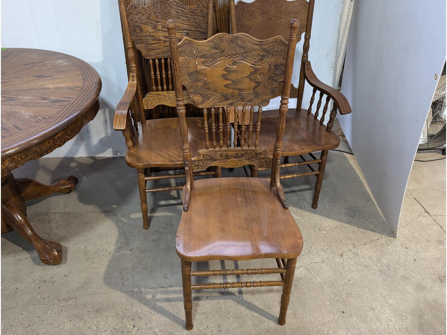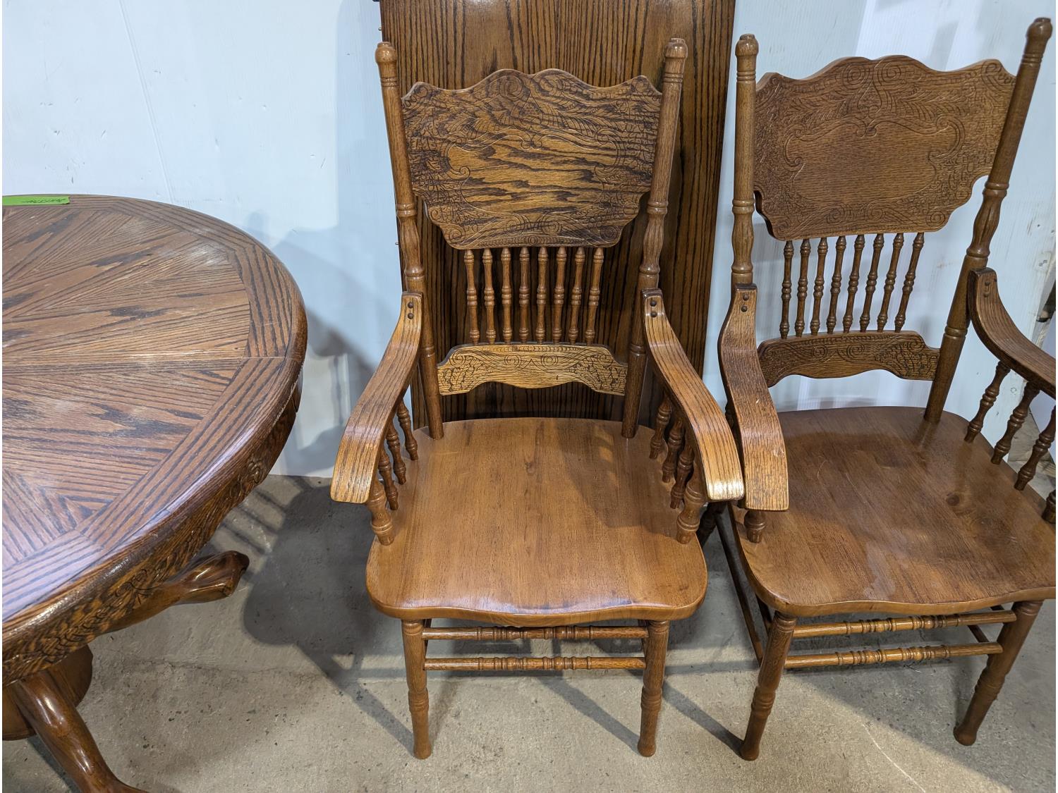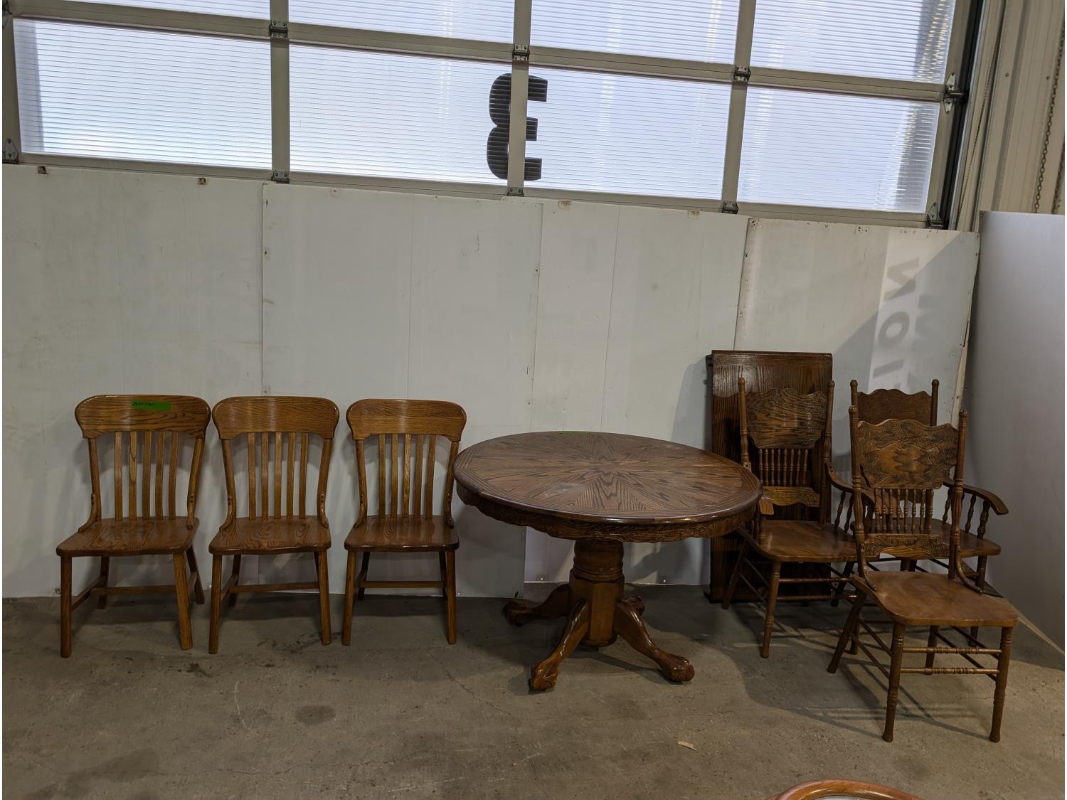 1719 Wooden Kitchen Table with Leaf and (6) Chairs