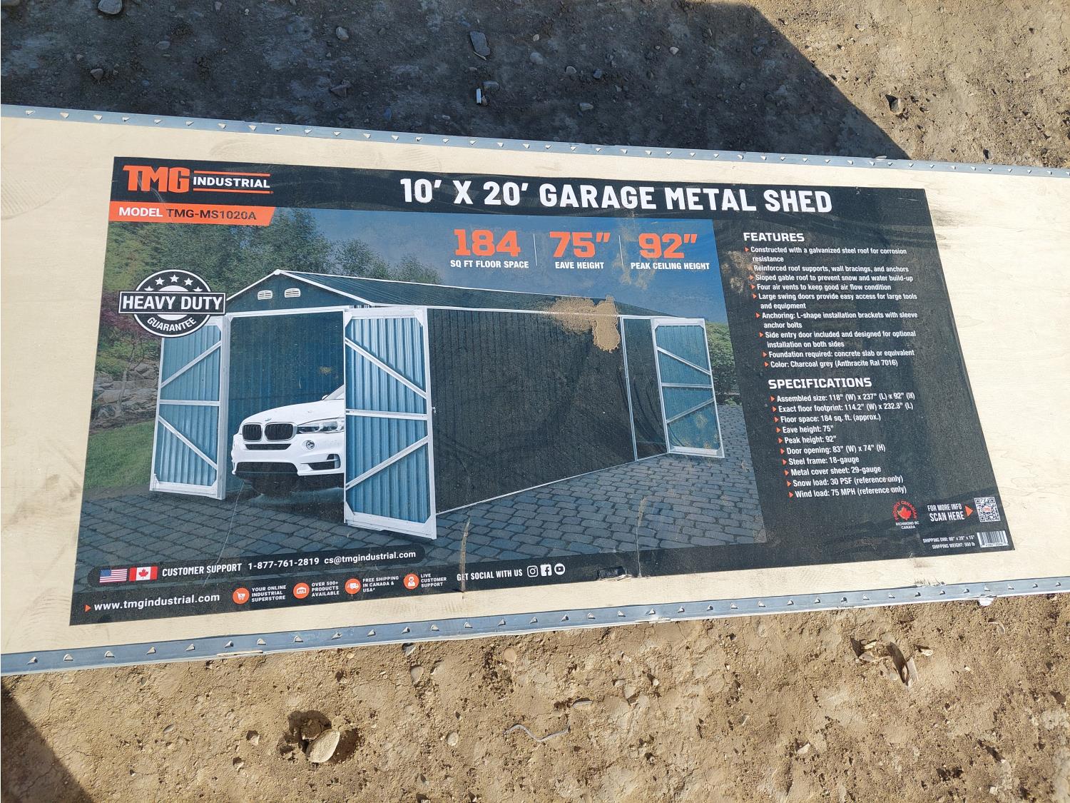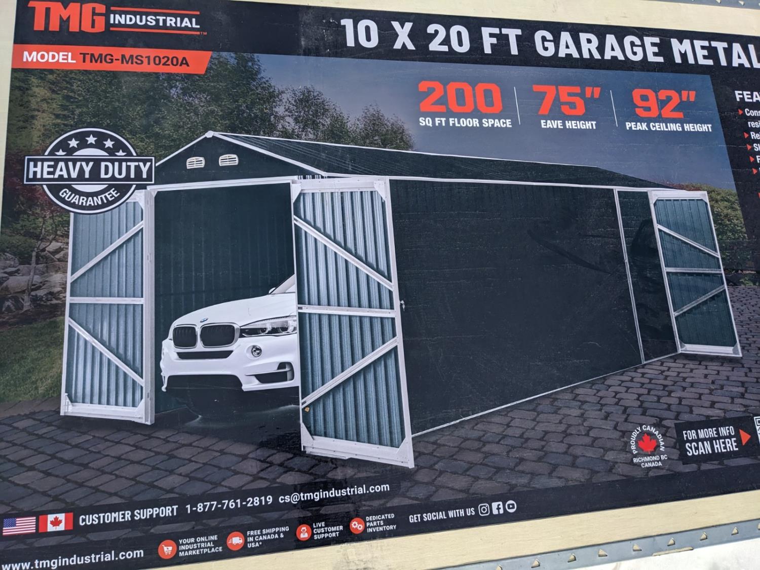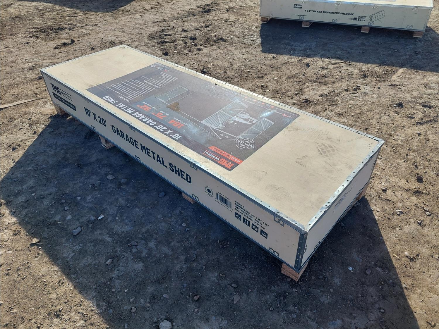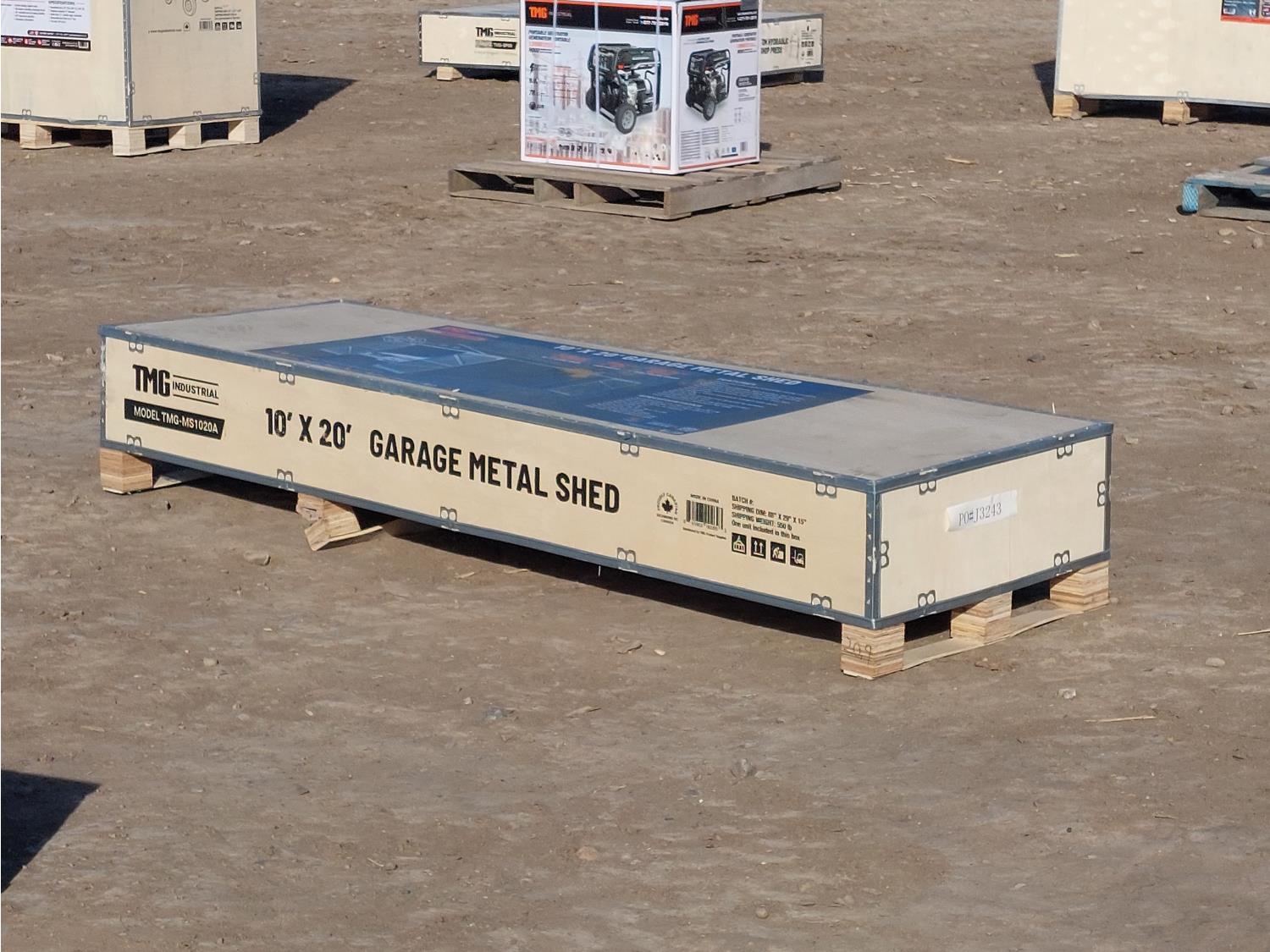 36 TMG Industrial TMG-MS1020A 10 Ft X 20 Ft Metal Garage Shed with Double Front Doors (Unused)